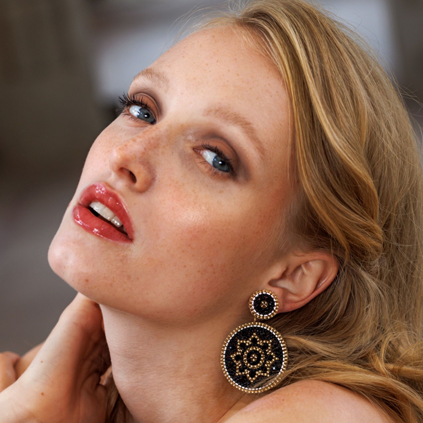 Einzigartige handgefertigten Ohrhänger mit japanischen Seed Perlen in Schwarz / Gold - Farbtönen ziehen alle Blicke auf sich. Der Ohrstecker ist aus Titan gefertigt und somit höchst Allergiker-freundlich; super leichter Tragekomfort.