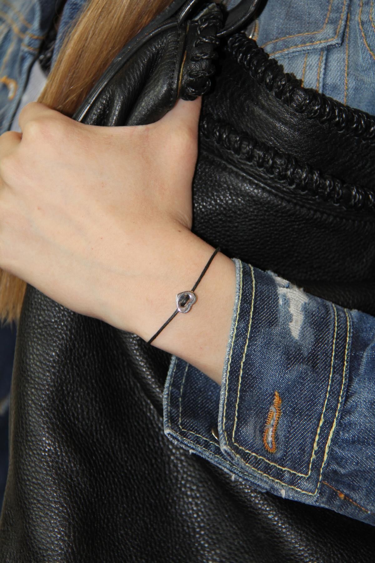 Zartes, schwarzes Textilarmband mit Herzanhänger (rhodiniert). Durchmesser Herzanhänger ca. 1 cm