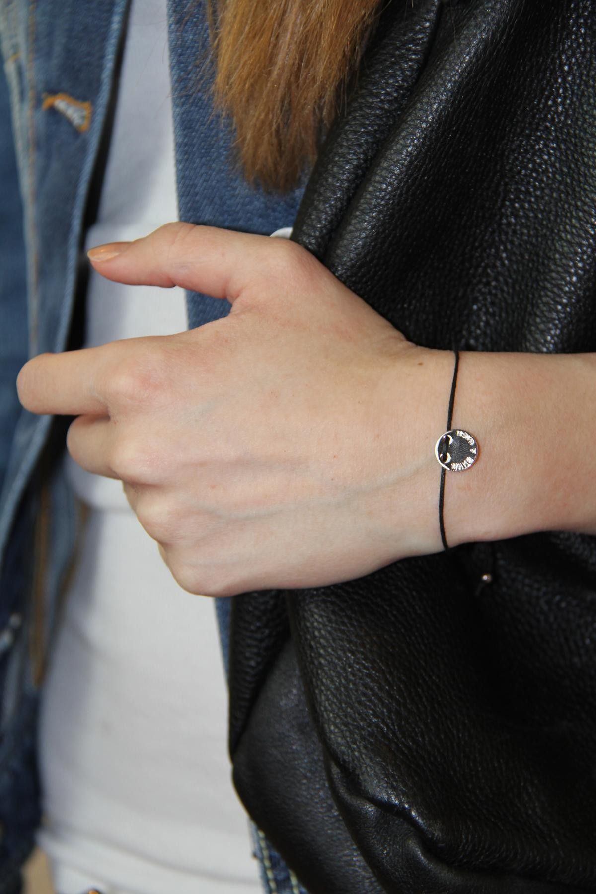 Make a Wish - positive Energie am Handgelenk. Möge Ihr Wunsch sich erfüllen! Hauchzartes schwarzes Textilarmband mit rhodinierter "MAKE A WISH" Plakette. Durchmesser Plakette: ca. 1cm, Armband größenverstellbar.