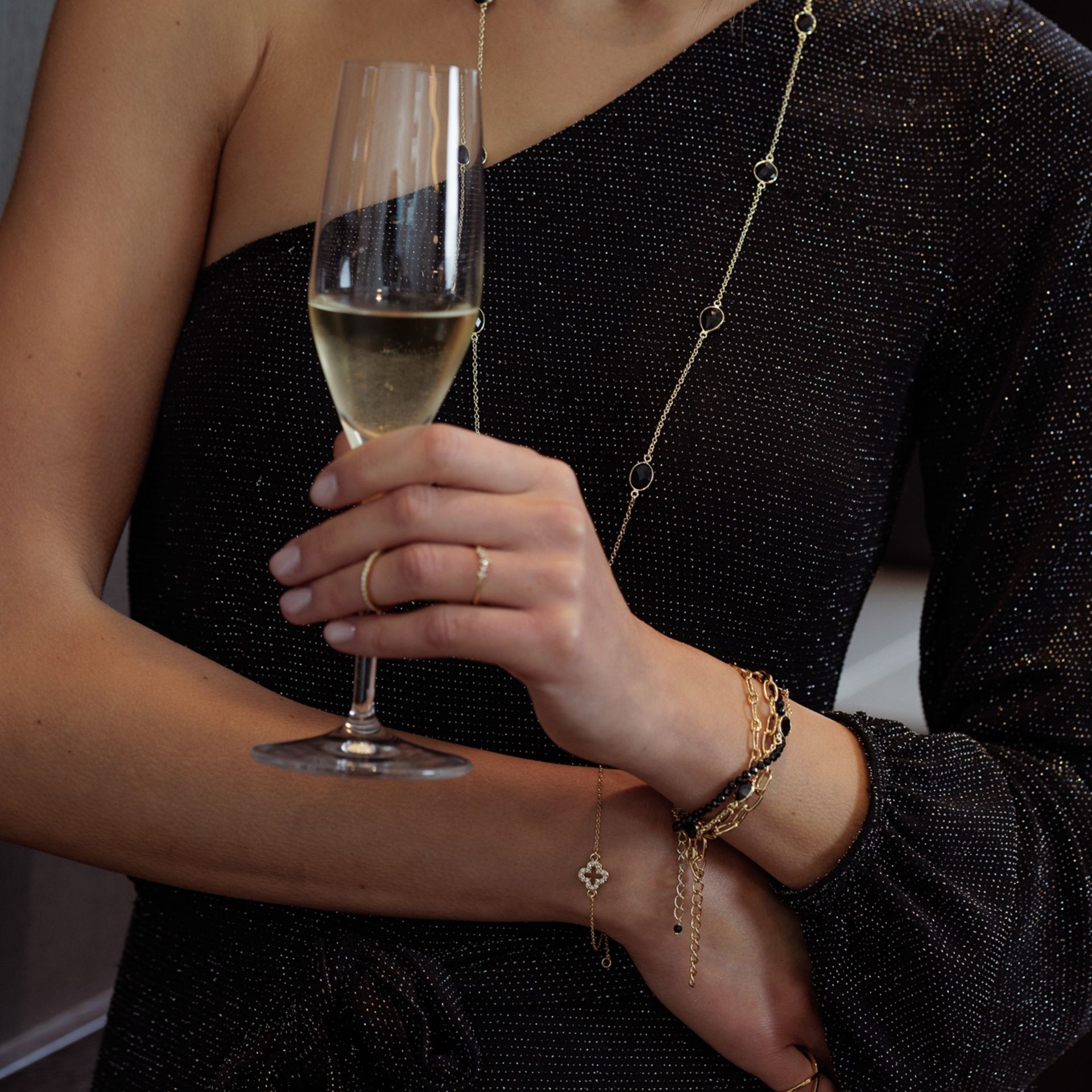 Ein echter Glücksbringer und Hingucker, diese vergoldete Armkette mit zartem Kleeblattanhänger. Zahlreiche Kristalle verzierten das Kleeblatt - eine wunderschöne Kombination mit unseren vergoldeten Kleeblattohrringen. Tragen und zeigen Sie Ihr Glück! Größenverstellbar, Gesamtlänge 16-20cm.