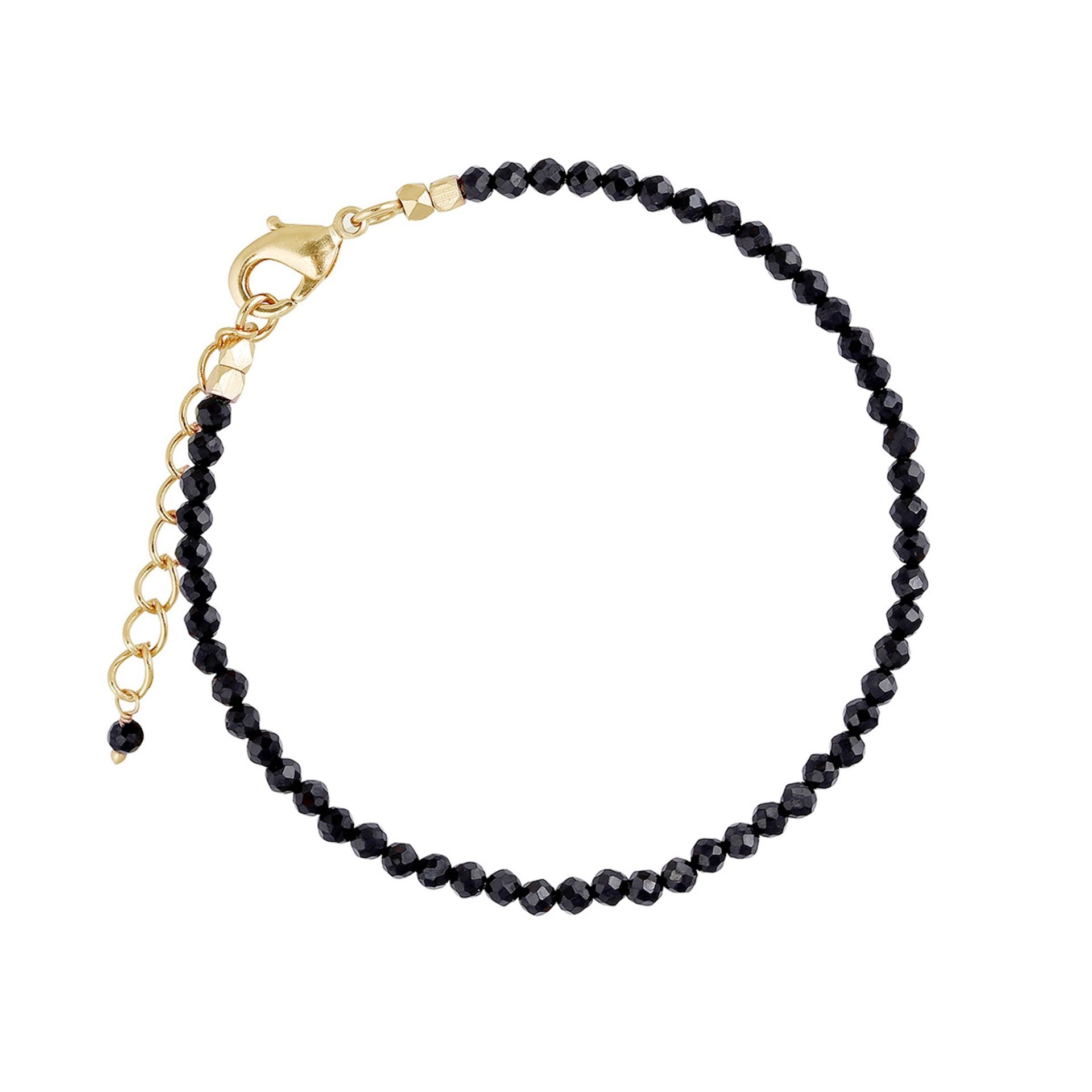 Wunderschöne vergoldete Armkette mit zahlreichen echten, schwarzen Spinell-Steinen. Ein eleganteer Eyecatcher, der sich mit vielen Looks kombinieren lässt und jedem Outfit das gewisse Etwas verleiht. Größenverstellbar.