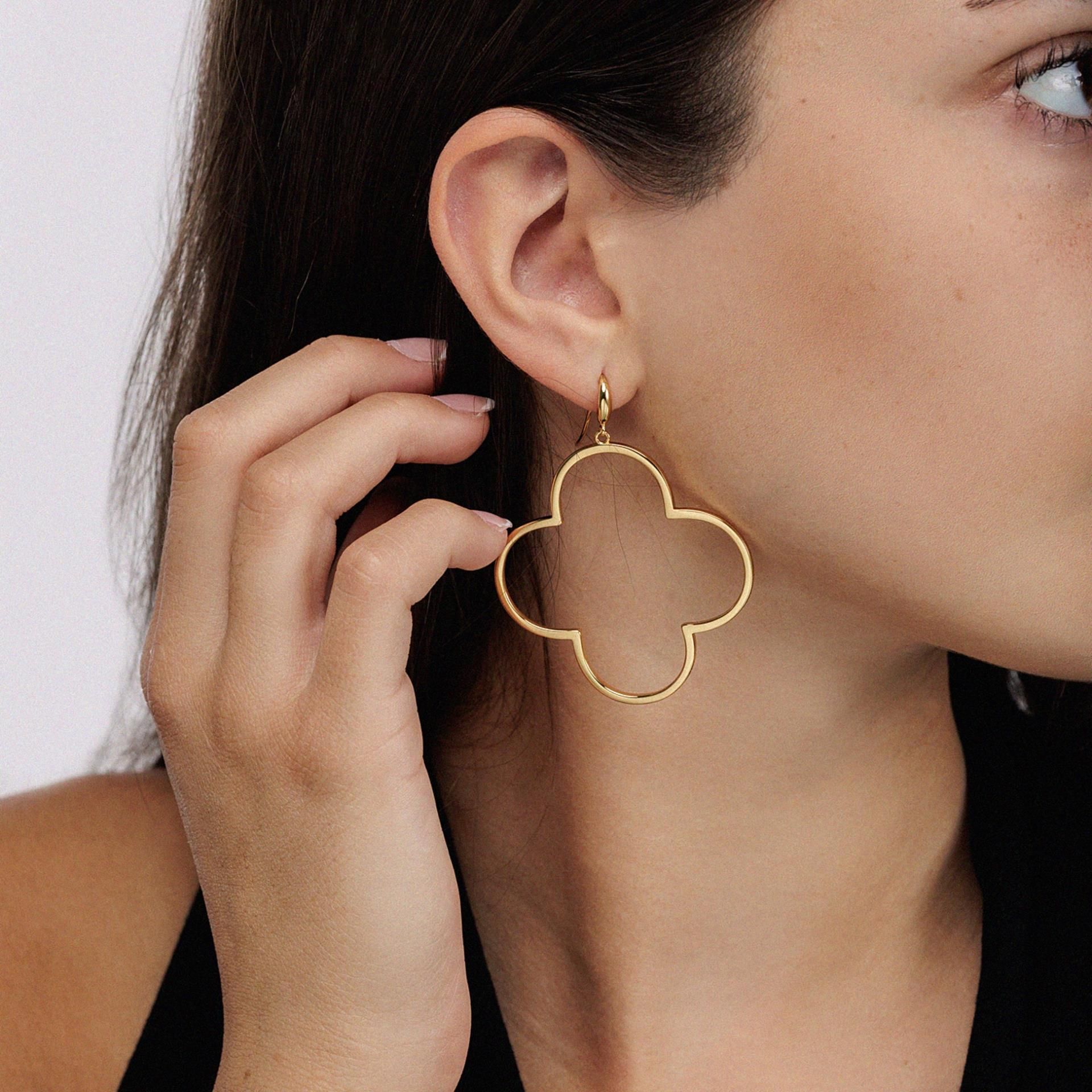 Trendiger Ohrring in beliebter Kleeblatt-Form. Der super leichte Tragekomfort machen diesen vergoldeten Ohrring zu Ihrem täglichen Begleiter. Gesamtlänge ca. 6,5cm - verschiedene Varianten erhältlich!