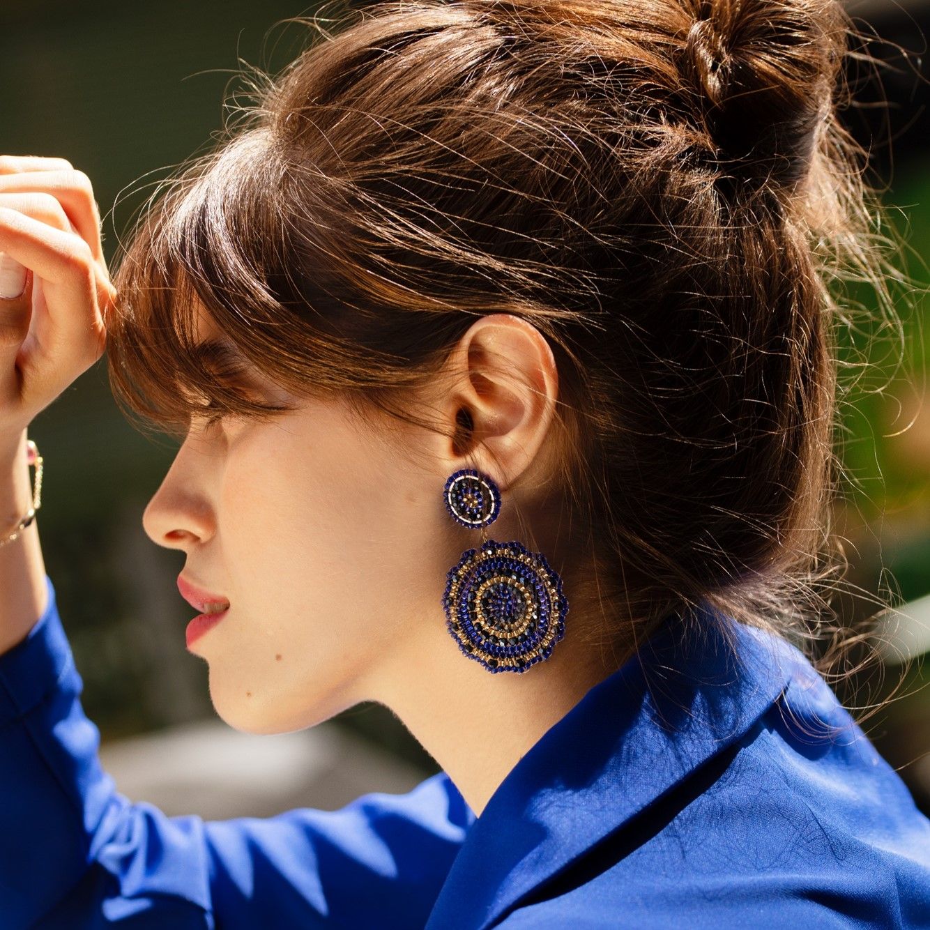 Wunderschöne handgefertigte Ohrringe mit japanischen Seed Perlen in dunkelblauem Farbton. Der Ohrstecker ist aus Titan gefertigt und somit höchst Allergiker-freundlich; super leichter Tragekomfort