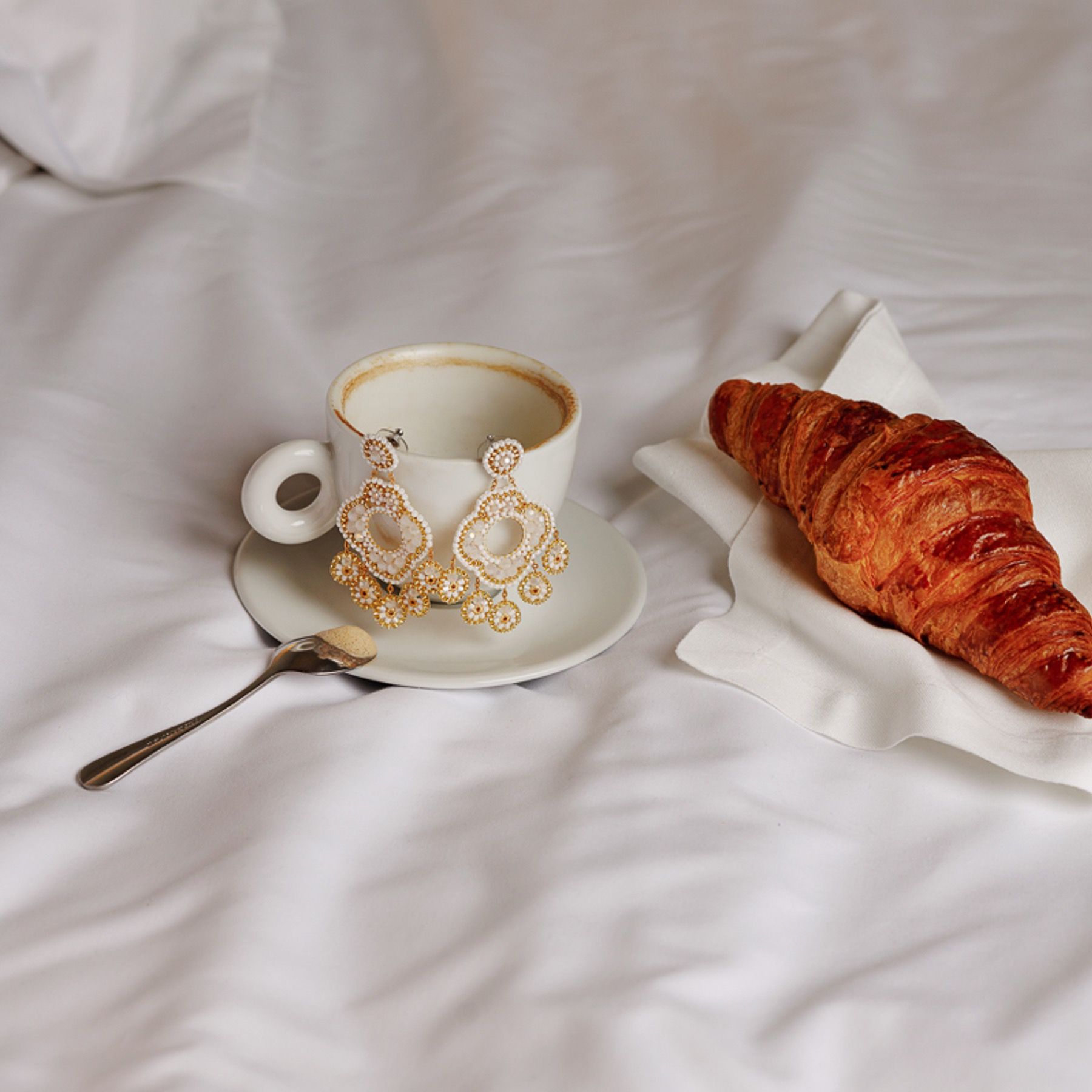 Der Ohrring Dazzling in White/Gold ist unser neues It-Piece für den Sommer. Verspielt im Boho-Stil und in einer edlen Weiß-Gold-Kombination gehalten, strahlt er zeitlose Eleganz mit einer leichten, femininen Note aus.