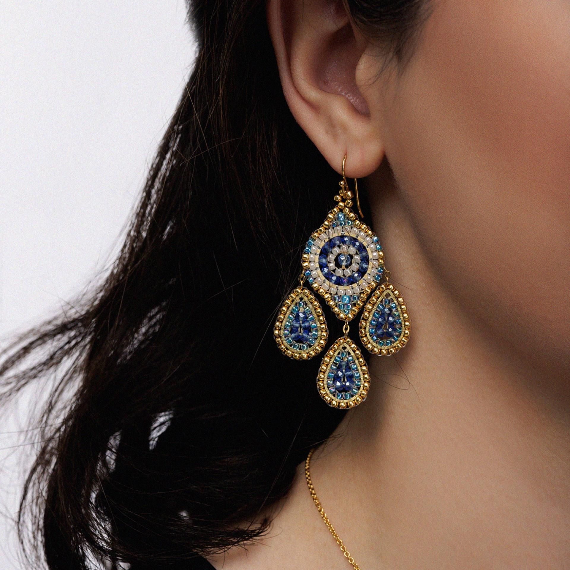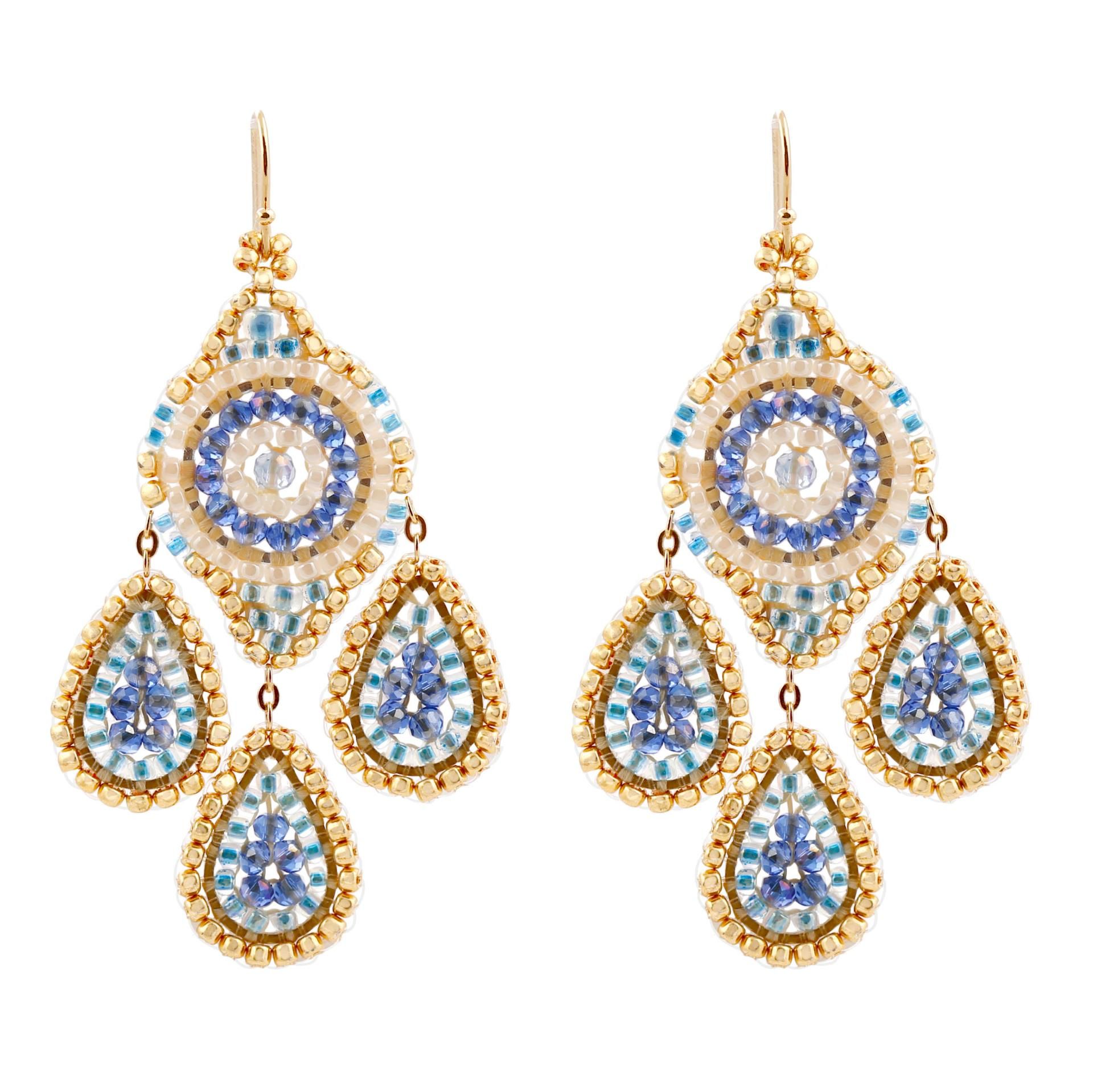 Einzigartige handgefertigte Ohrringe in wunderschönen Hellblau/Weiß//Goldtönen; super leichter Tragekomfort, Gesamtlänge ca. 6,7cm