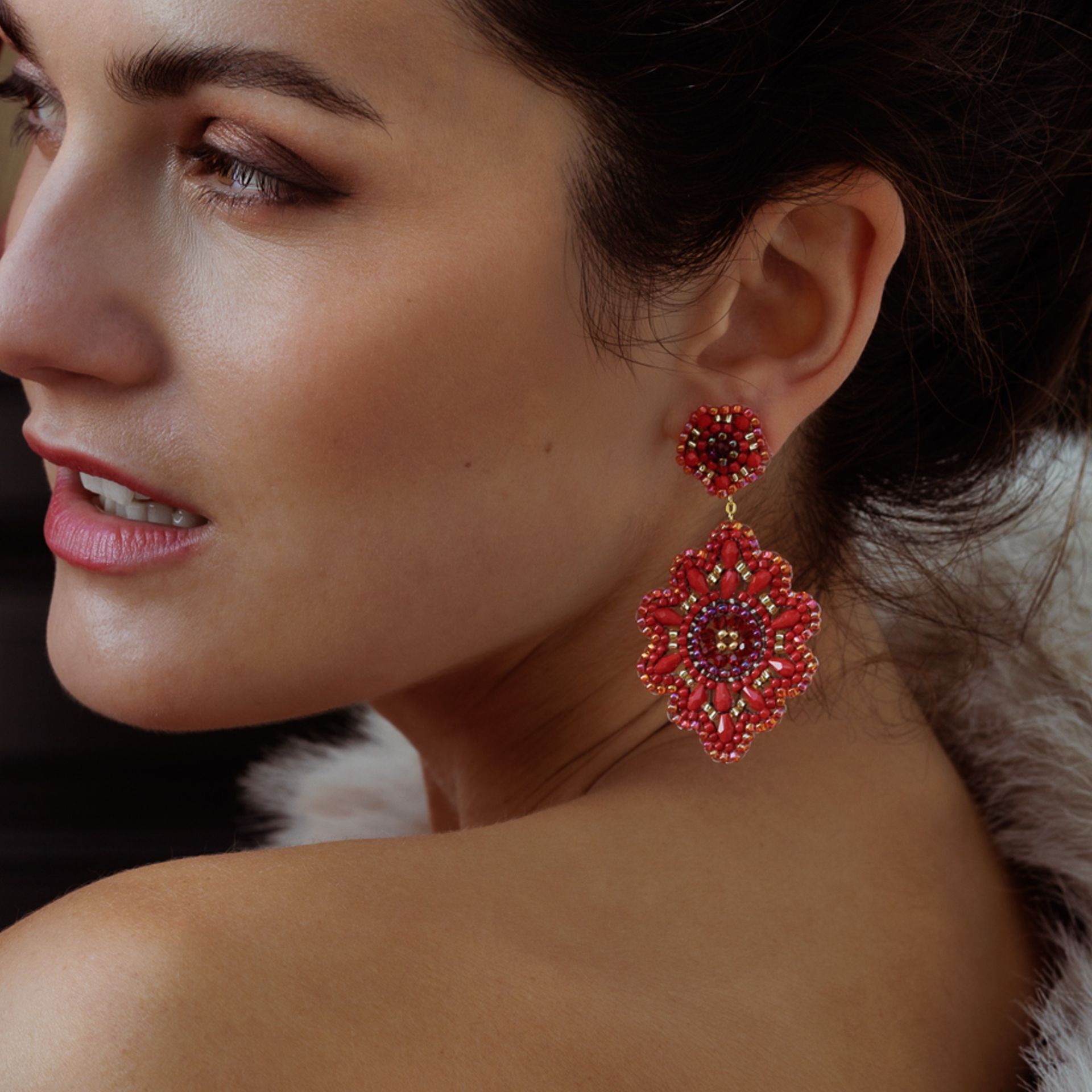 Die wunderschönen blütenförmigen Ohrstecker aus feurig roten japanischen Seed Perlen sind ein besonderer Eyecatcher. Der Ohrstecker ist aus Titan und somit extrem allergikerfreundlich. Der super leichte Tragekomfort macht diese handgefertigten Ohrringe zu einem unserer absoluten Lieblingsstücke und ist in vielen Farbkombinationen erhältlich. Gesamtlänge ca. 6,5cm.