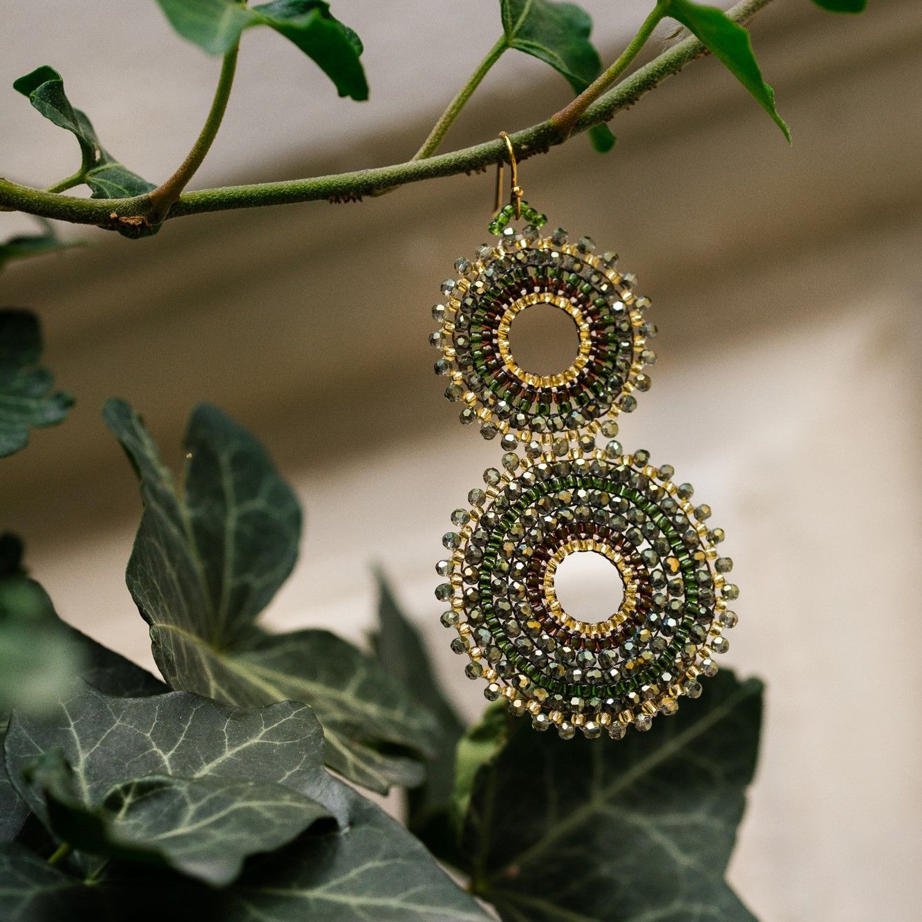 Boho Ohrringe SeaweedDiese wunderschönen handgefertigten Ohrringe mit grünen japanischen Seed Perlen ziehen alle Blicke auf sich. Kombiniert sich wunderbar mit einem Armband in der gleichen Farbkombination. Gesamtlänge ca. 8 cm