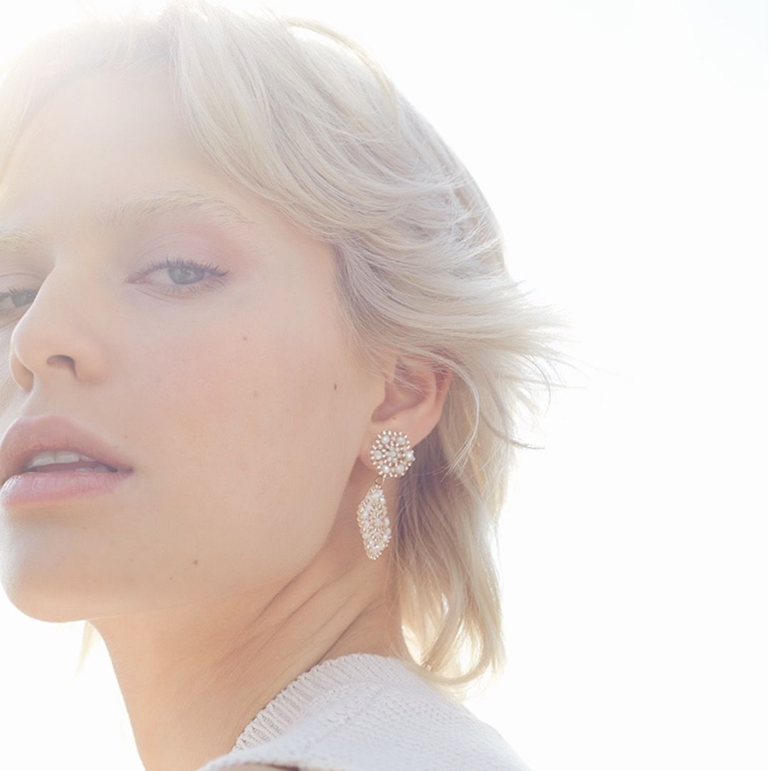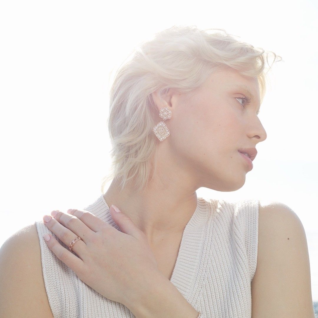 Diese wunderschönen handgefertigten Ohrstecker mit weißen/rosé färbigen japanischen Seed Perlen ziehen alle Blicke auf sich. Gesamtlänge 5cm