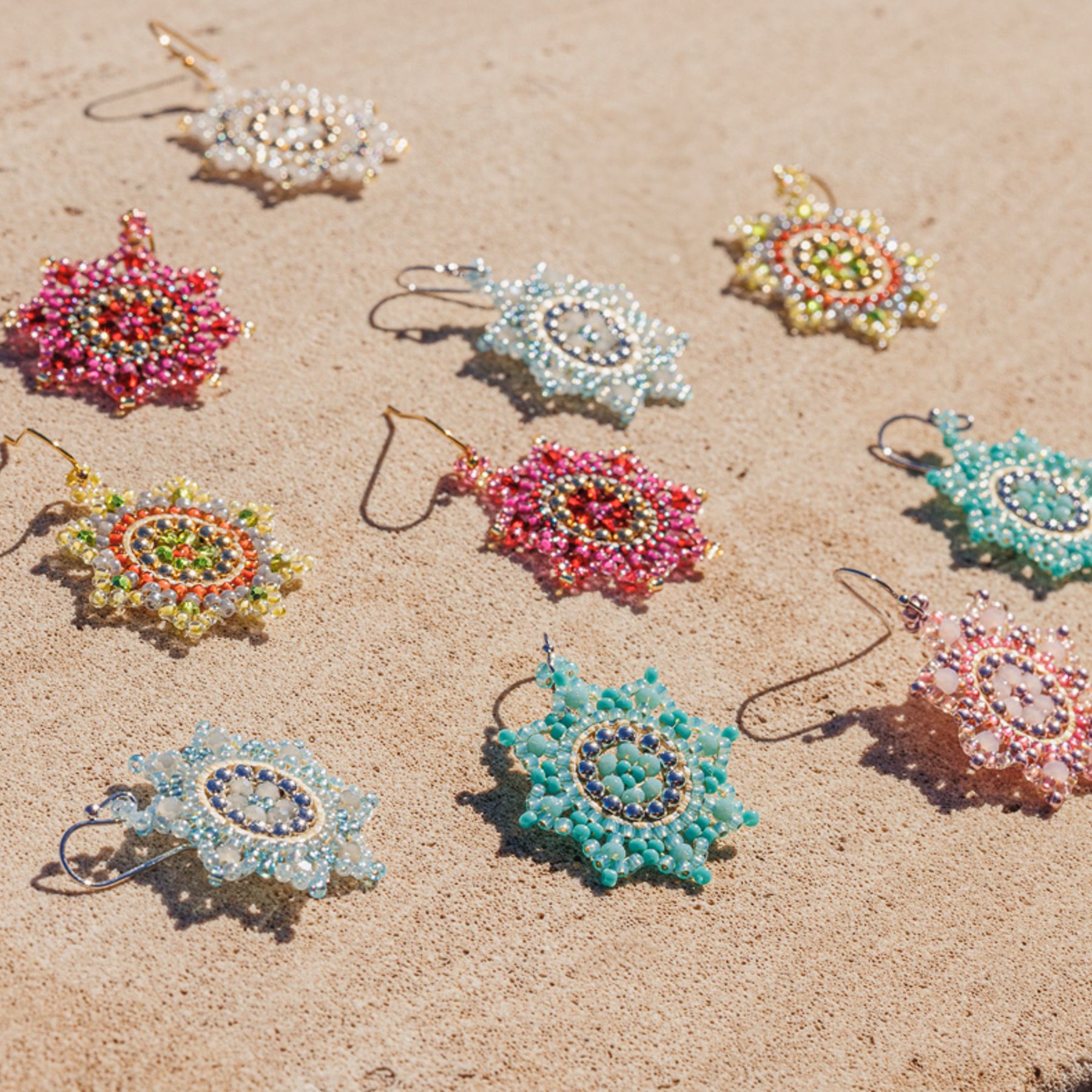 Handgeknüpfte Stern-Ohrringe aus wunderschönen korallfarbenen Perlen - das perfekte Accessoire für jeden Anlass. Die Gesamtlänge der Ohrringe beträgt ca. 4,5cm.