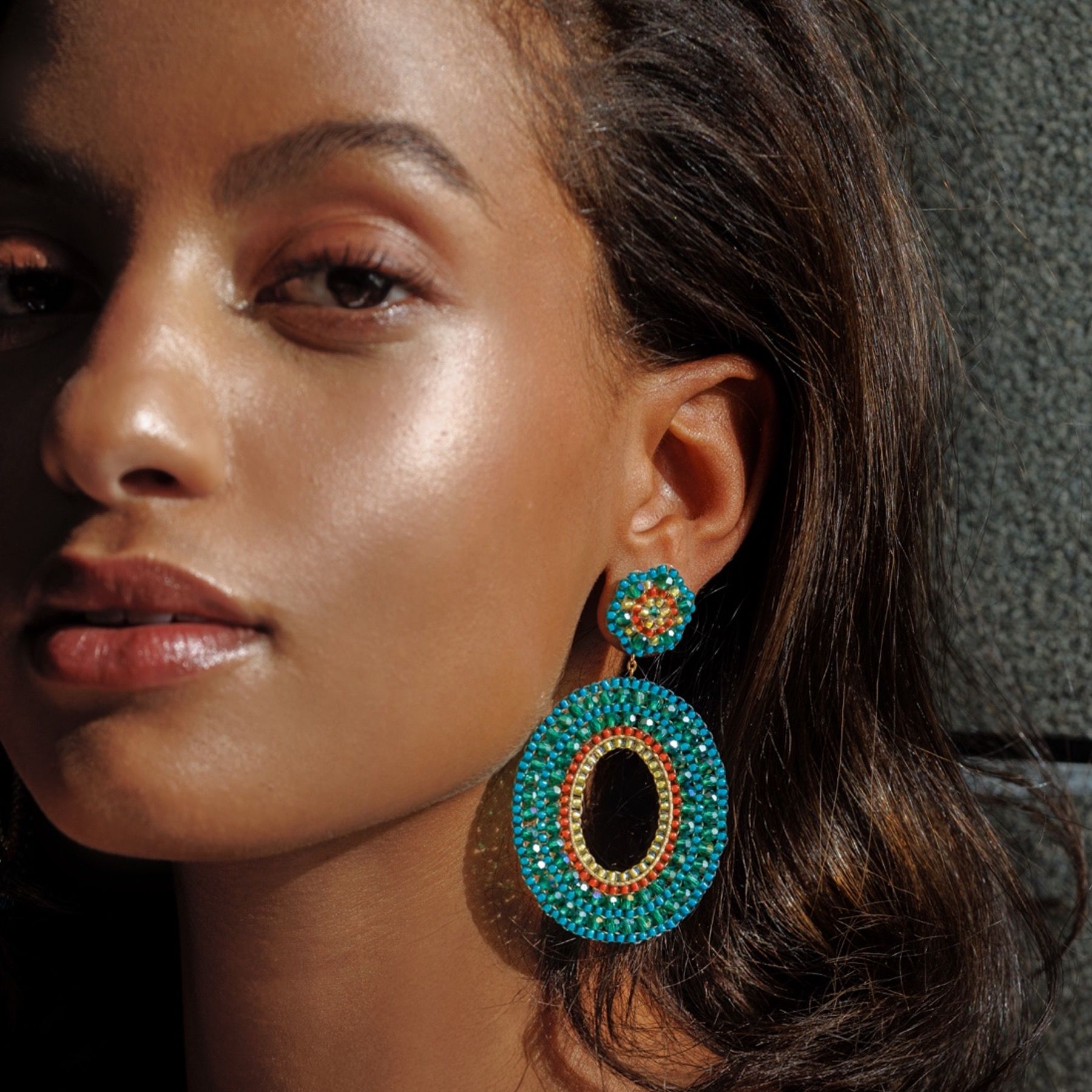 Endlich auch als CLIP! Die wunderschönen ovalförmigen Boho-Ohrringe aus petrol- und orangefarbigen Seed Perlen sind ein besonderer Eyecatcher. Hoher Tragekomfort dank leichtem Gewicht und angenehmem Clip-Verschluss. Gesamtlänge ca. 7,5 cm.