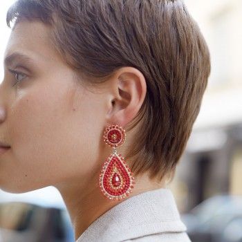 Diese wunderschönen handgefertigten Ohrstecker mit roten japanischen Seed Perlen ziehen alle Blicke auf sich. Die Ohrhänger sind dank ihres praktischen Clipverschlusses unkompliziert und besitzen einen hohen Tragekomfort. Länge ca. 8 cm. Limited edition!