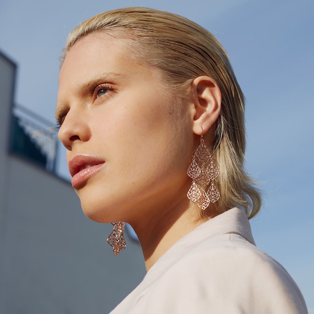 Highlight: Handarbeit, aufwendige Verarbeitung, hoher Tragekomfort dank leichtem Gewicht, rosé vergoldeter Haken