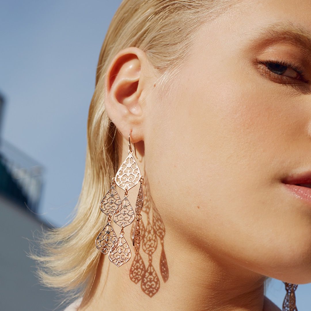 Wunderschöne leichte Ornamentohrringe, rosé vergoldet. Dei Gesamtlänge beträgt 8,5cm.