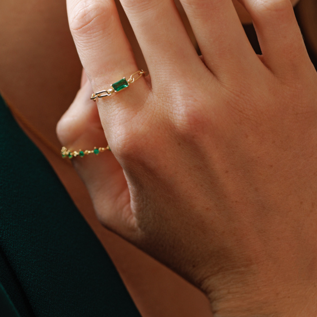 Kettenring mit grünem Kristall
