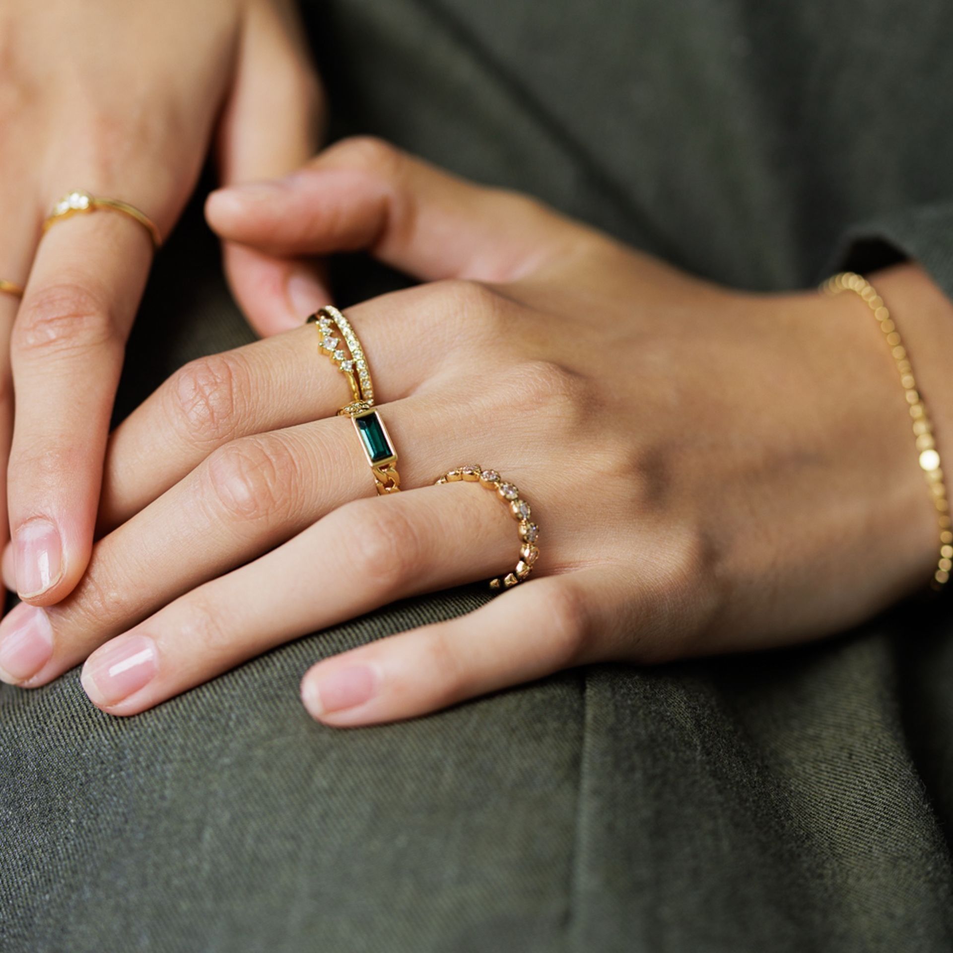 Modernes Design und elegant funkelnde Kristalle machen diesen vergoldeten Ring zu einem ganz besonderen Fingerschmuck. Hochwertig und schön legt er sich um Ihren Finger und lässt Sie strahlen. Ein feminin zeitloses Must-Have für jede modebewusste Frau, das sich mit vielen Ringen kombinieren lässt! Umfang Größe S: 52 mm, M: 56 mm, L: 60 mm