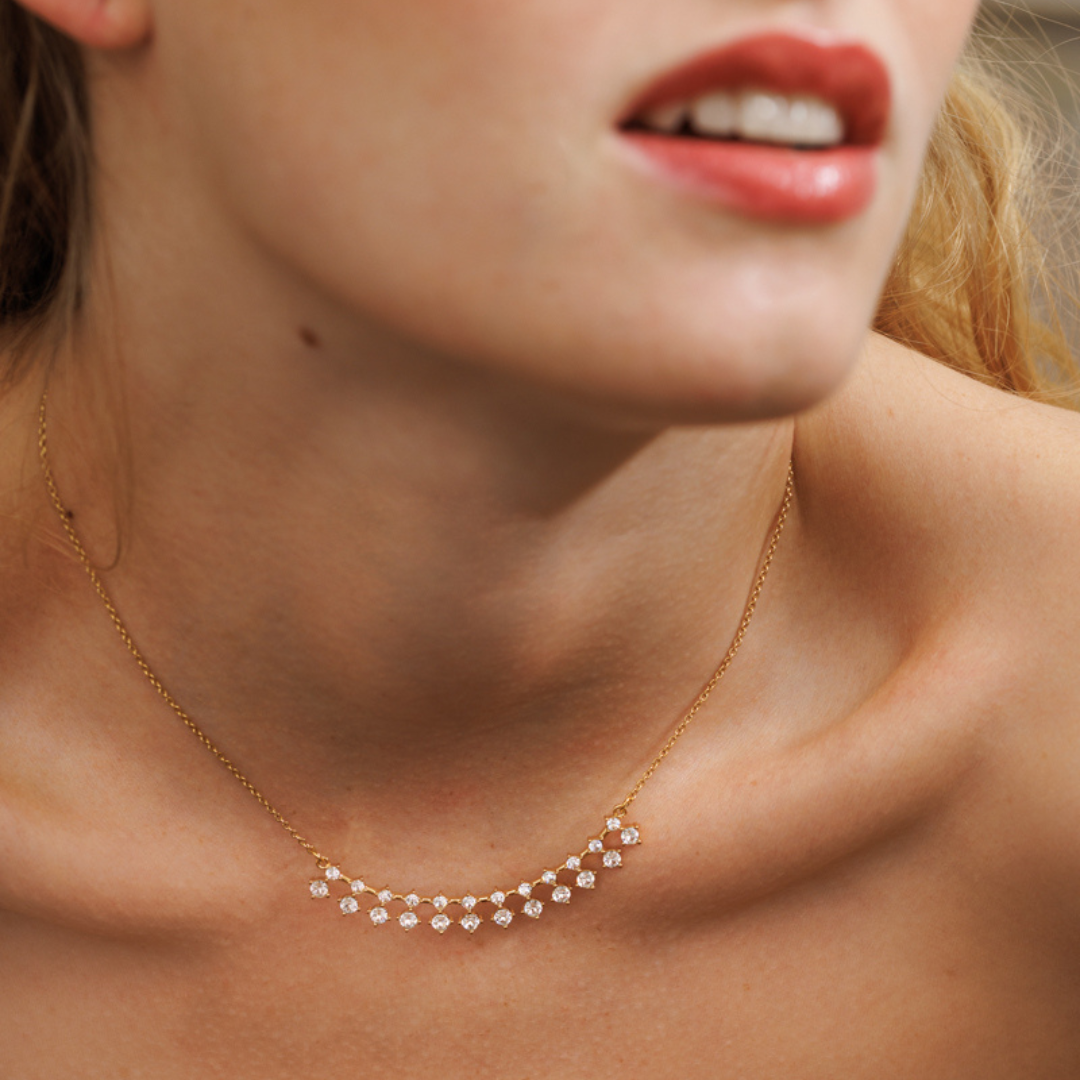 Diese Kette ist ein absoluter Hingucker! Das mit Kristallen besetzte, vergoldete Schmuckstück lässt Ihr Dekolleté erstrahlen.