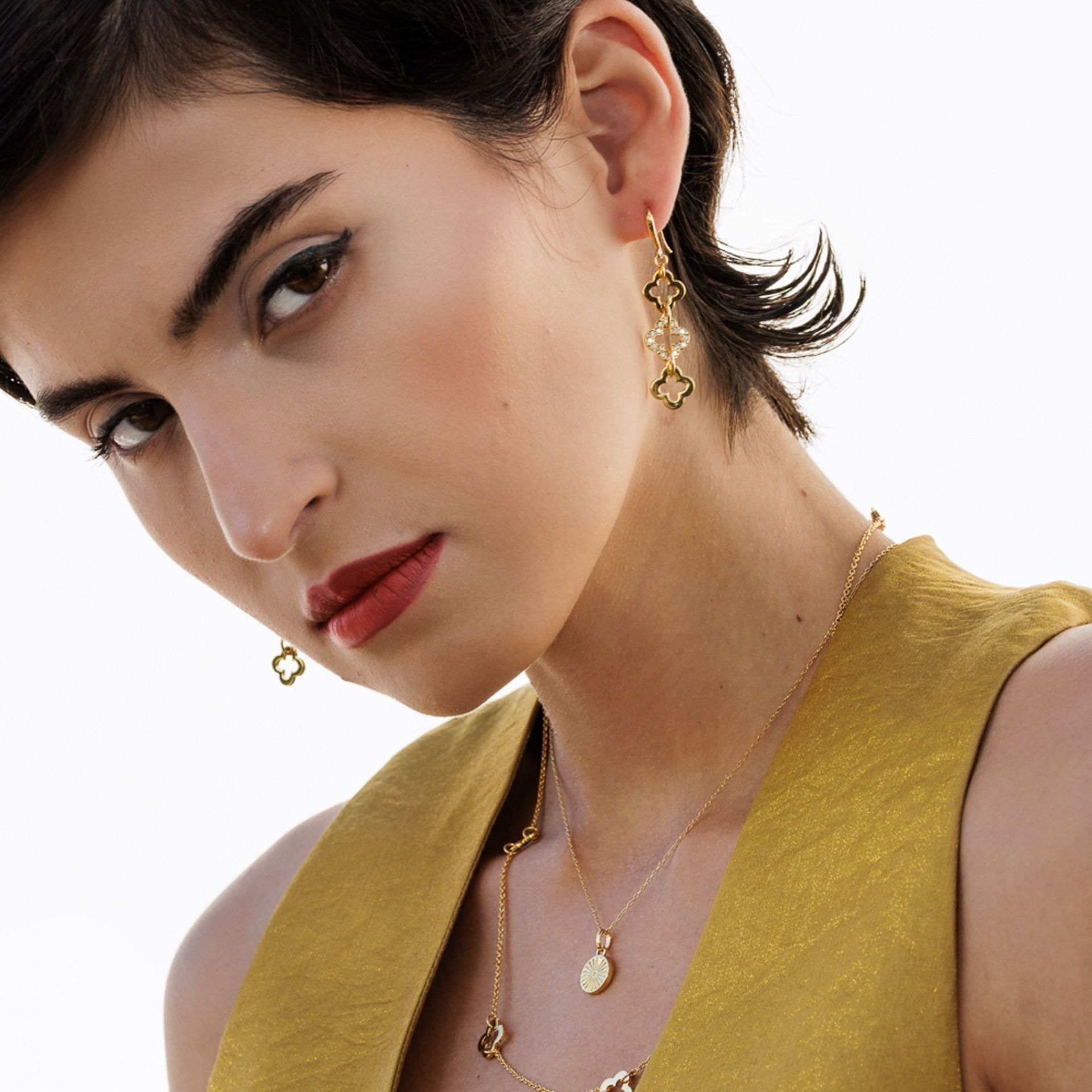 Must-Have der Saison! Ein echter Glücksbringer und Hingucker, diese 3 hauchzarten, vergoldeten und mit Kristallen verzierten Ohrhänger in Kleeblatt-Form. Tragen und zeigen Sie Ihr Glück! Gesamtlänge ca. 4,5cm