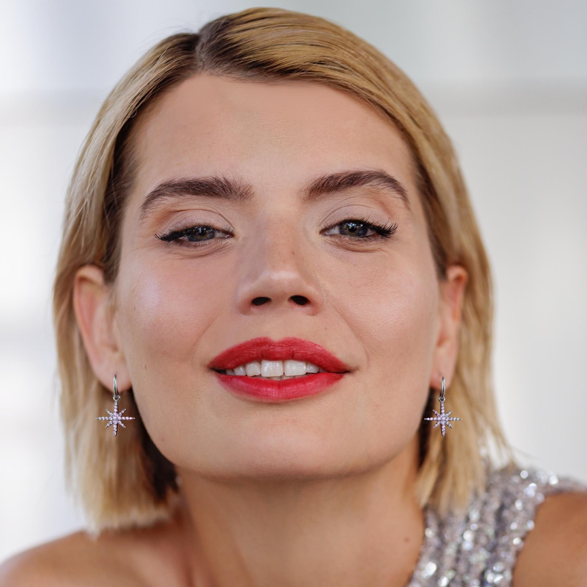 Rhodinierte Stern-Ohrringe mit zahlreichen funkelnden Kristallen. Ein echter Hingucker, der sich mit vielen Looks kombinieren lässt. Gesamtlänge: 2,6 cm; Durchmesser Stern: 1,5 cm