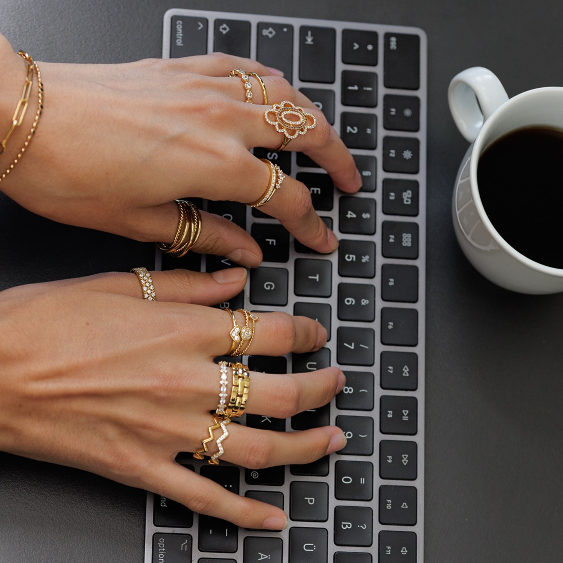 Hervorragende Eleganz mit einer modernen Note: dieser bezaubernde vergoldete Damenring zeigt sich im einzigartigen Design, der aus mehreren zarten Ringen besteht.