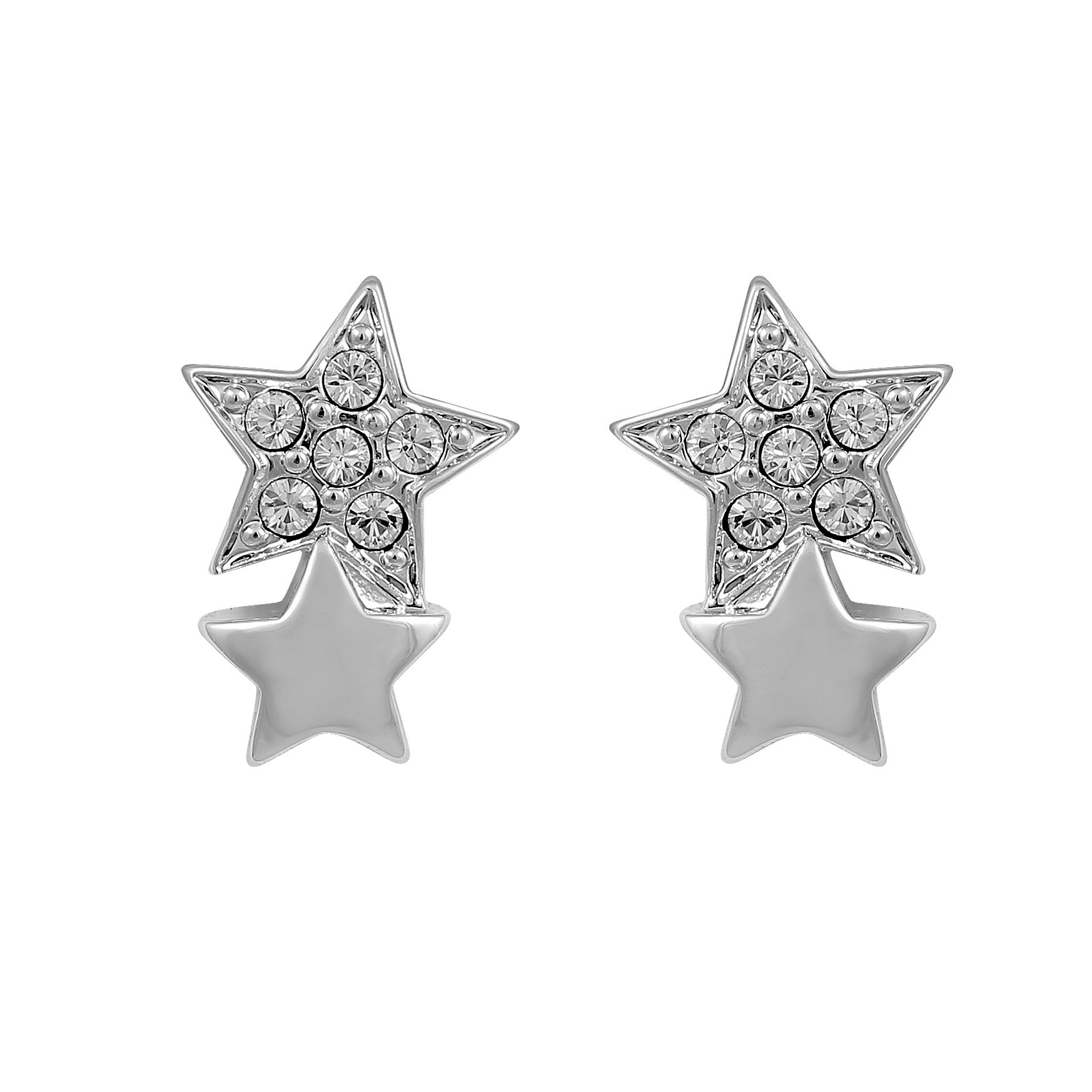 Dieser rhodinierte Stern-Ohrstecker ist ein wunderschöner Begleiter für jeden Tag und bezaubert mit seinen 2 Twin-Stars, einer mit Kristallen besetzt und einer poliert. Der Titanstecker garantiert höchte Verträglichkeit. Durchmesser Stern mit Kristallen 1cm; Durchmesser Stern poliert 0,6cm; Gesamtgröße 1,3cm