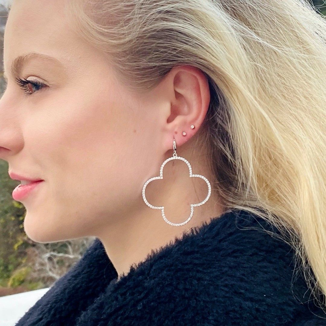 These beautiful large clover leaf earrings are studded with countless fine crystals. Length 6 cm, DM 5 cm