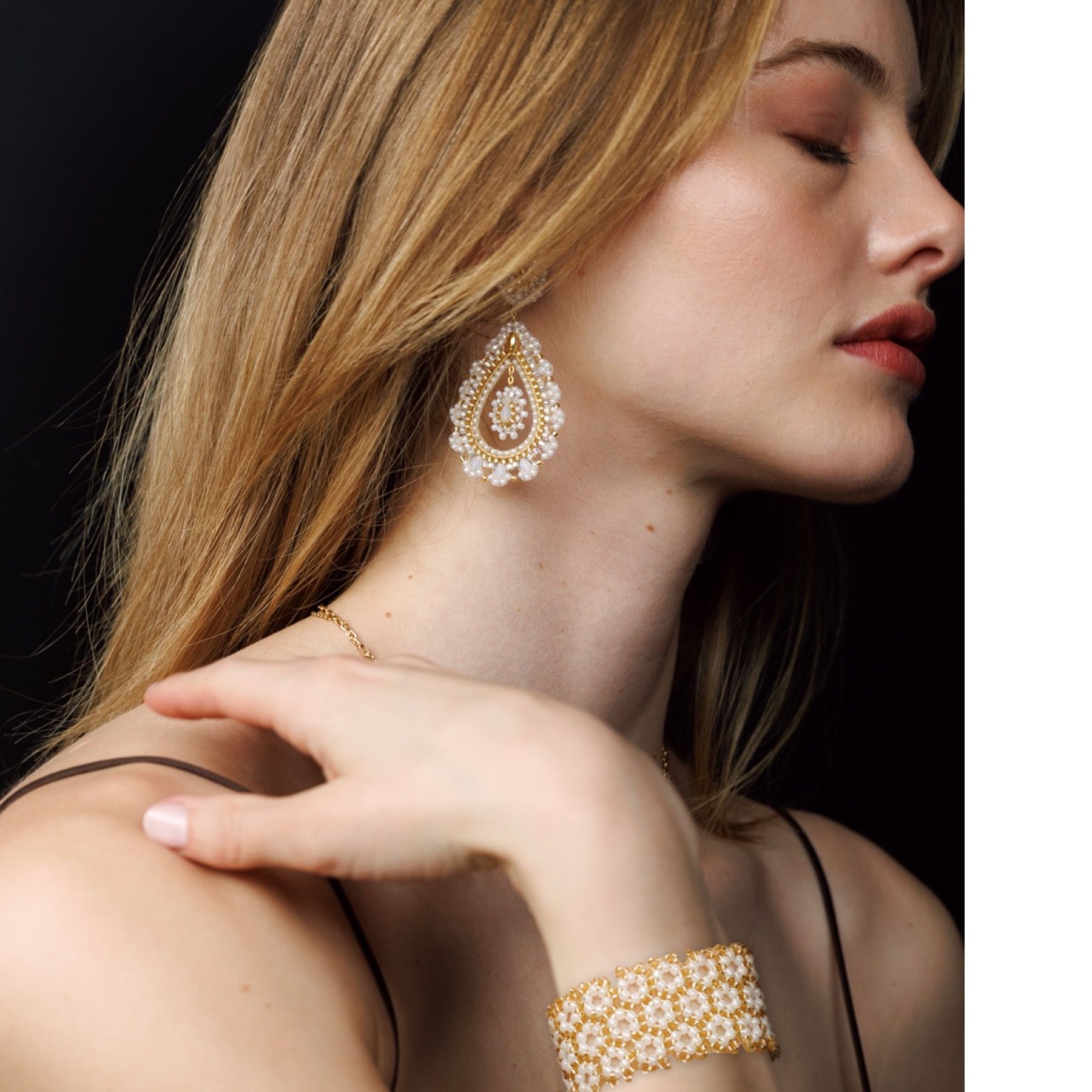 Something very special - the new hand-knotted bracelet from CAJOY in the colours white/gold. The bracelet nestles comfortably on your wrist and will attract everyone's attention. The length can be individually adjusted thanks to the chain at the clasp.The bracelet is approx. 3 cm wide