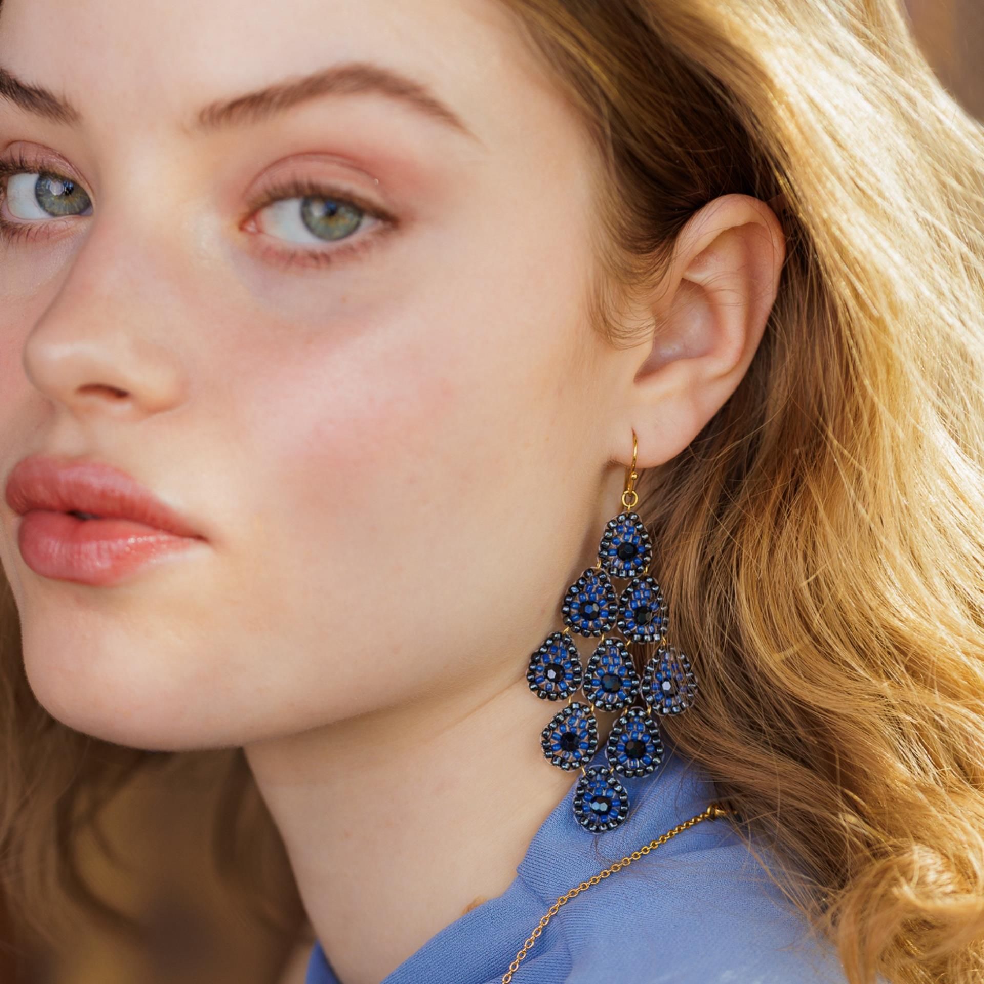 Our popular boho earrings in a new shape! The small, grape-shaped elements sparkle in dark blue tones and add a special touch to any outfit. Matching arm jewellery and rings available! Super light to wear, total length: approx. 8 cm