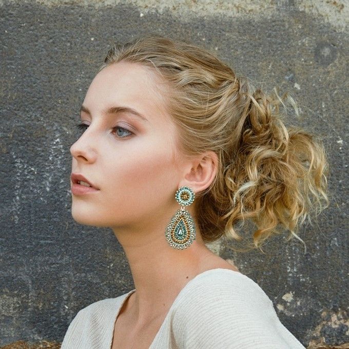 These beautiful handmade stud earrings with green & brown Japanese seed pearls are a real eye-catcher. Length approx. 7 cm