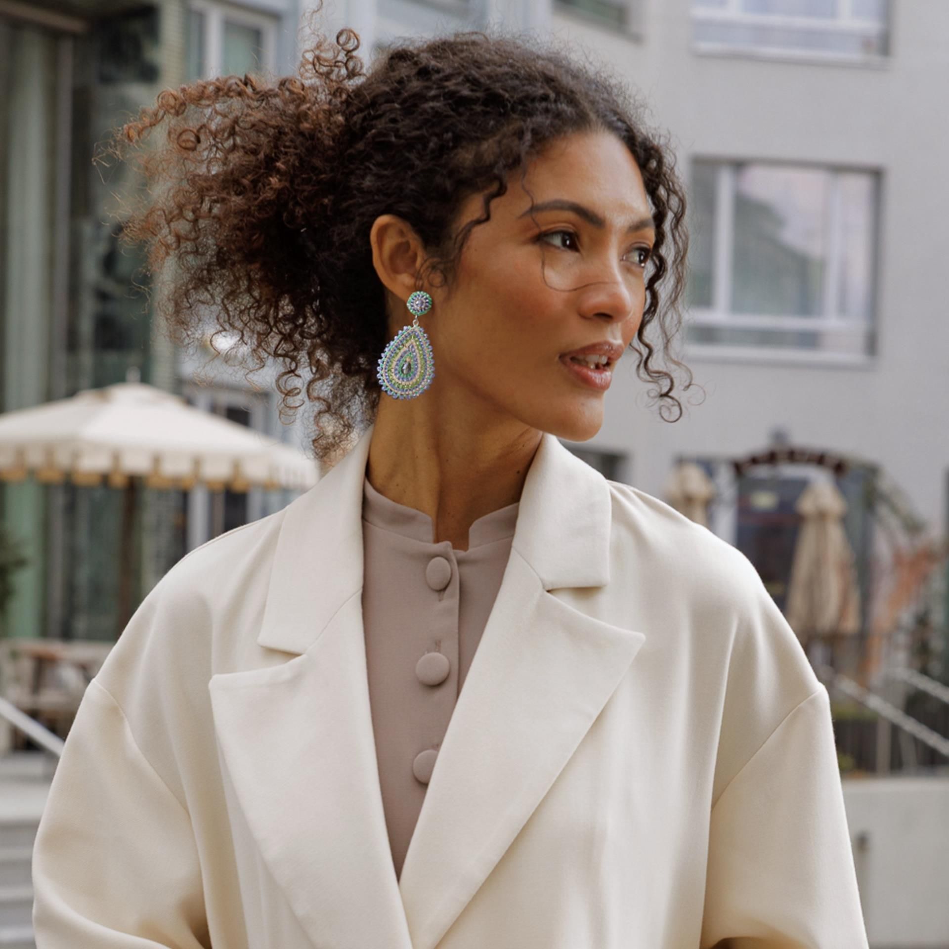 Our popular, handmade drop earrings with Japanese seed pearls in summery shades of green and blue are a real eye-catcher. The stud is made of titanium and is therefore extremely allergy-friendly and perfectly compatible. Length approx. 7cm.