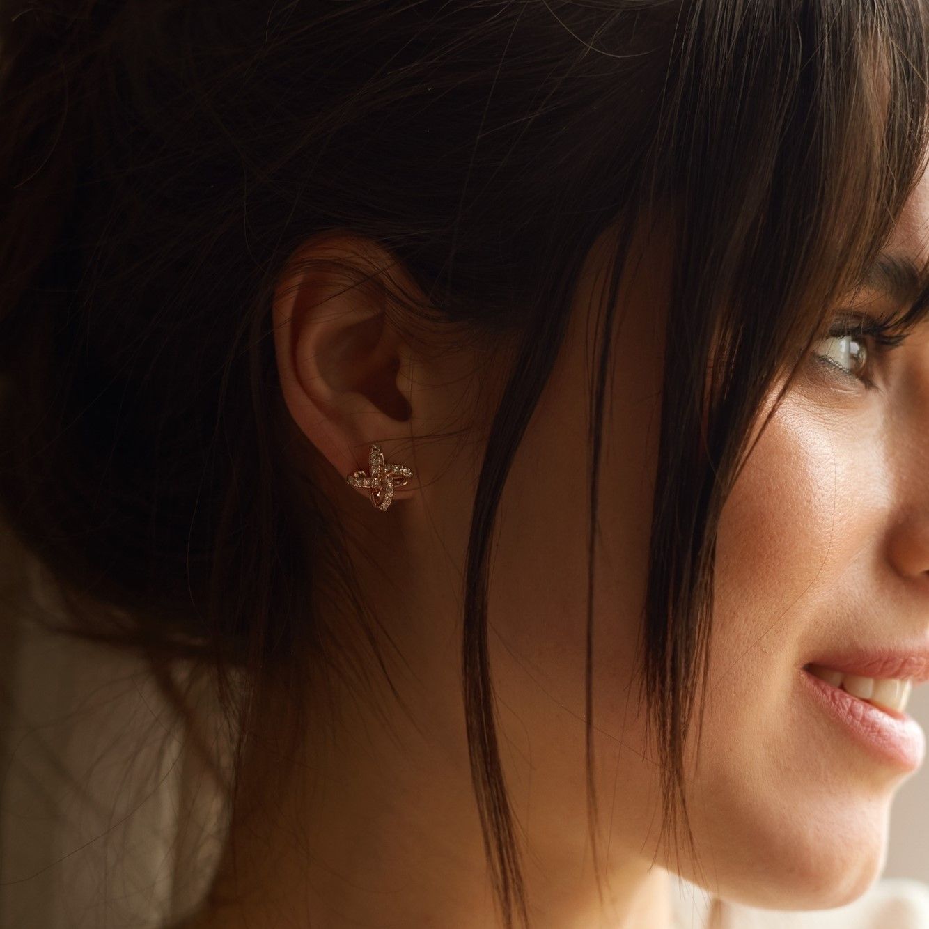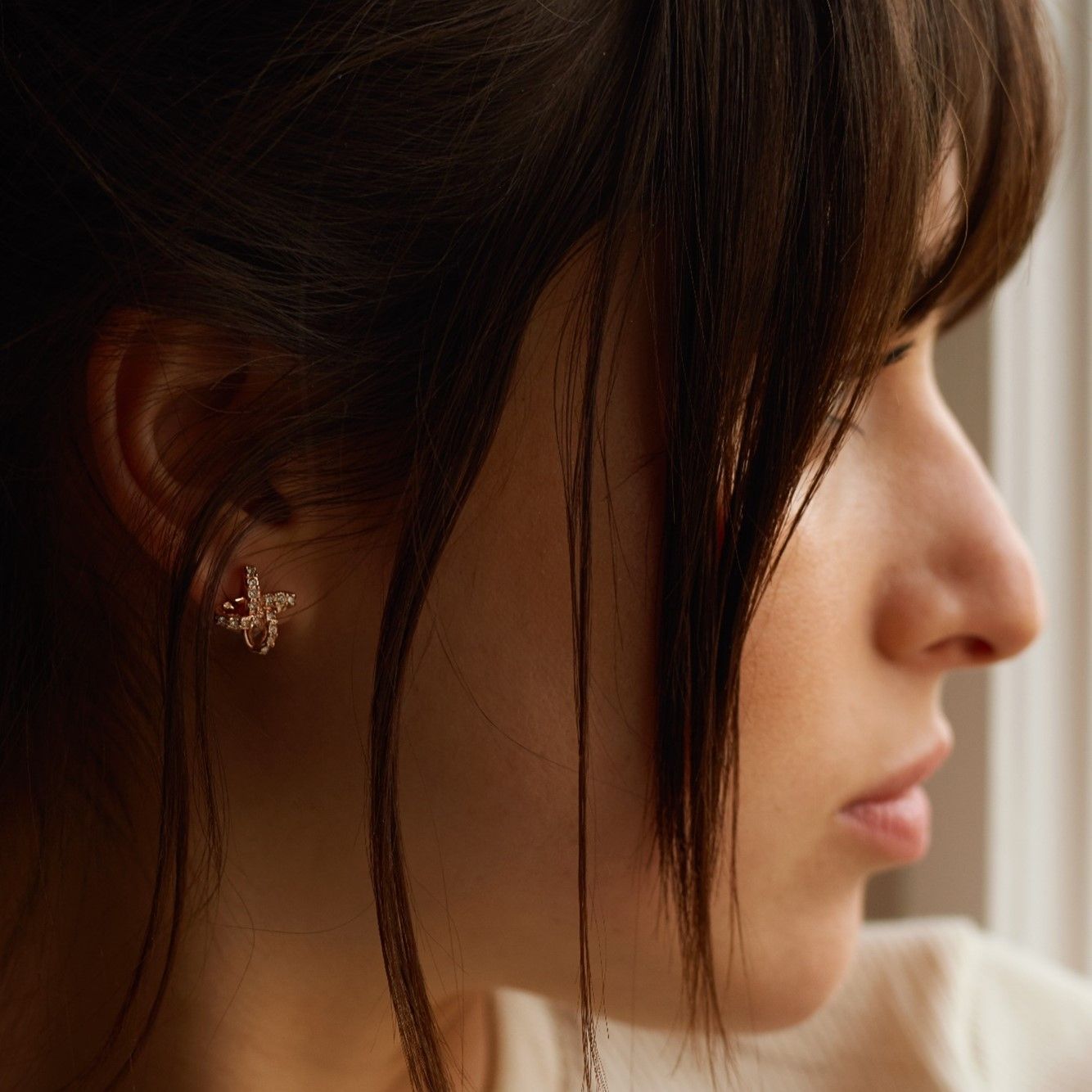CAJOY stud earrings with delicate crystals. Each individual crystal was set by hand in the prong setting. DM 1 cm