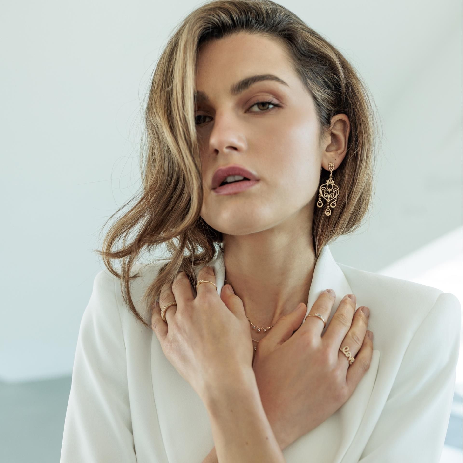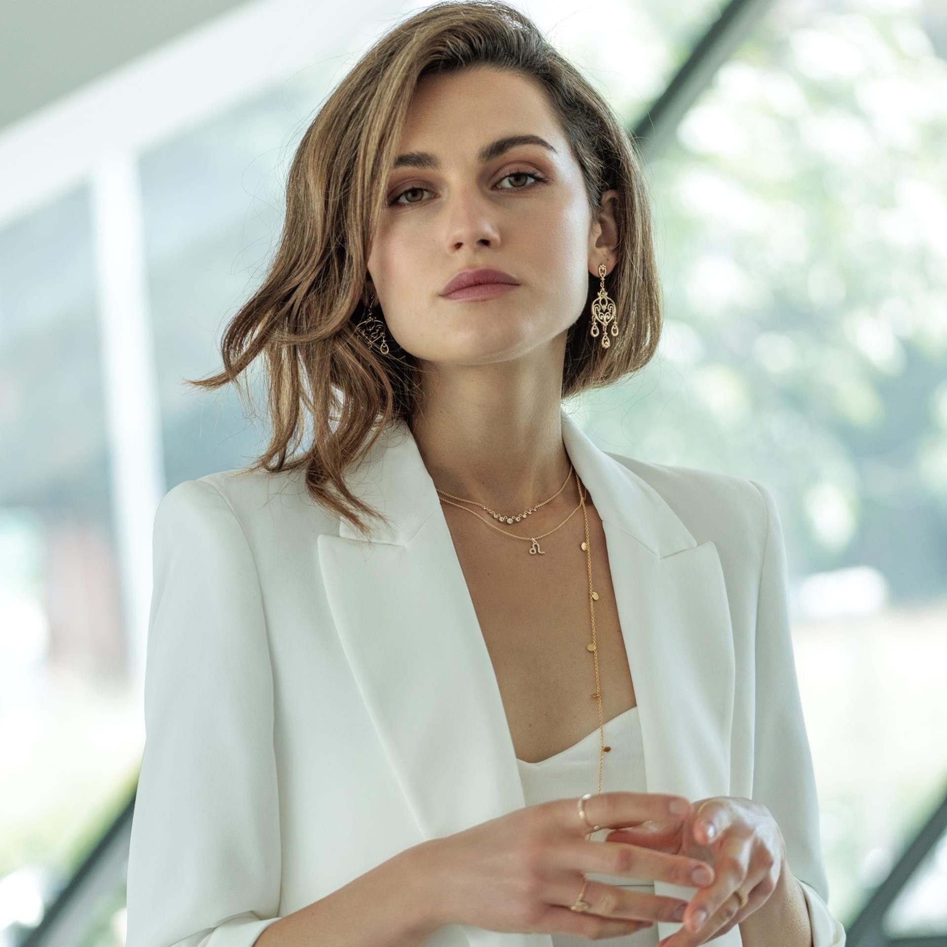 Enchanting, feather-light chandelier earrings with a titanium stud that is especially suitable for allergy sufferers. The earrings are 14k gold-plated and have a total length of approx. 5cm. The favourite piece of the CAJOY team :)
