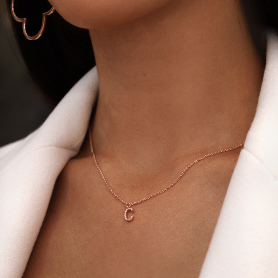 Beautiful rose gold-plated necklace with a letter pendant. The fine letter pendant is set with crystals and is enchanting with its delicacy. The perfect gift for a loved