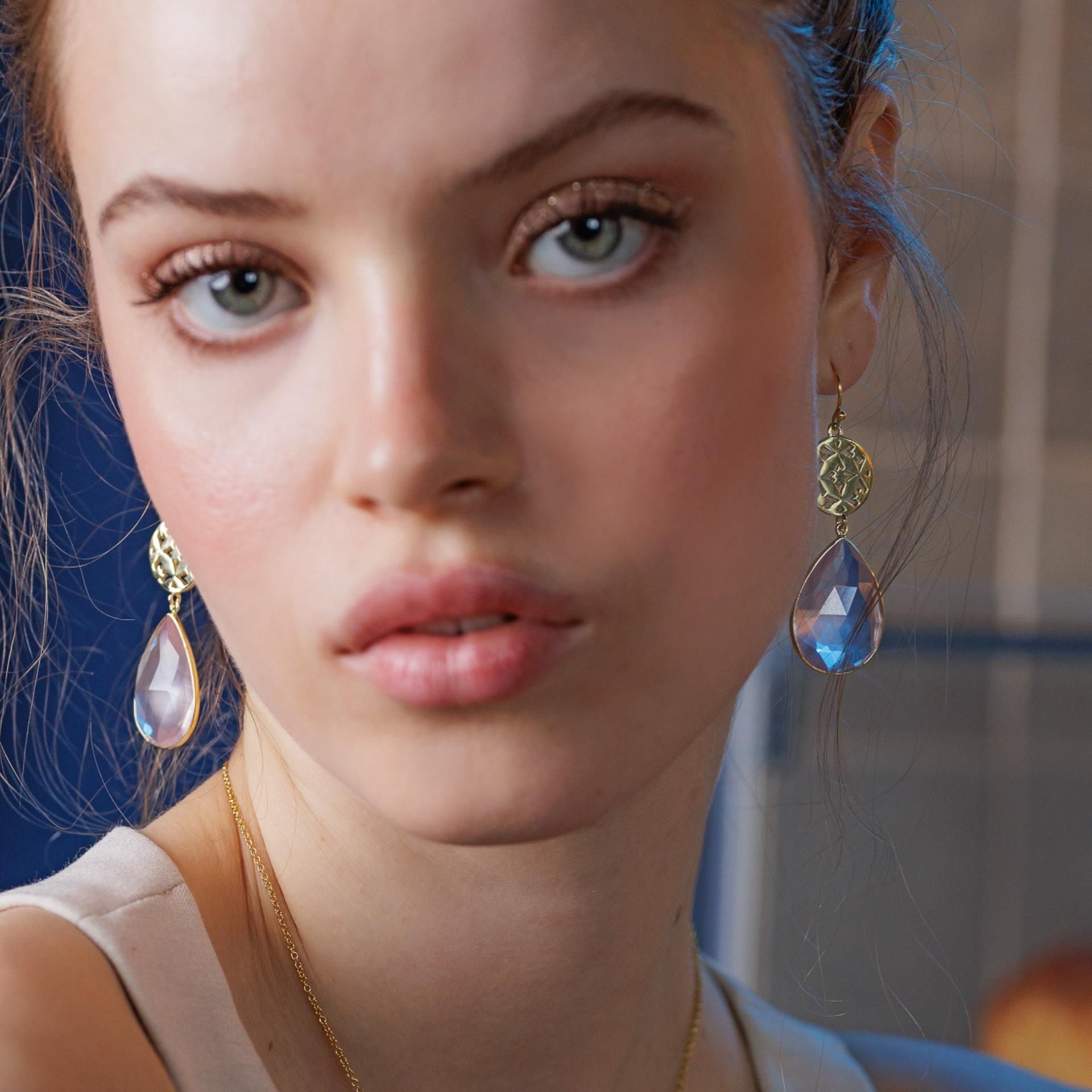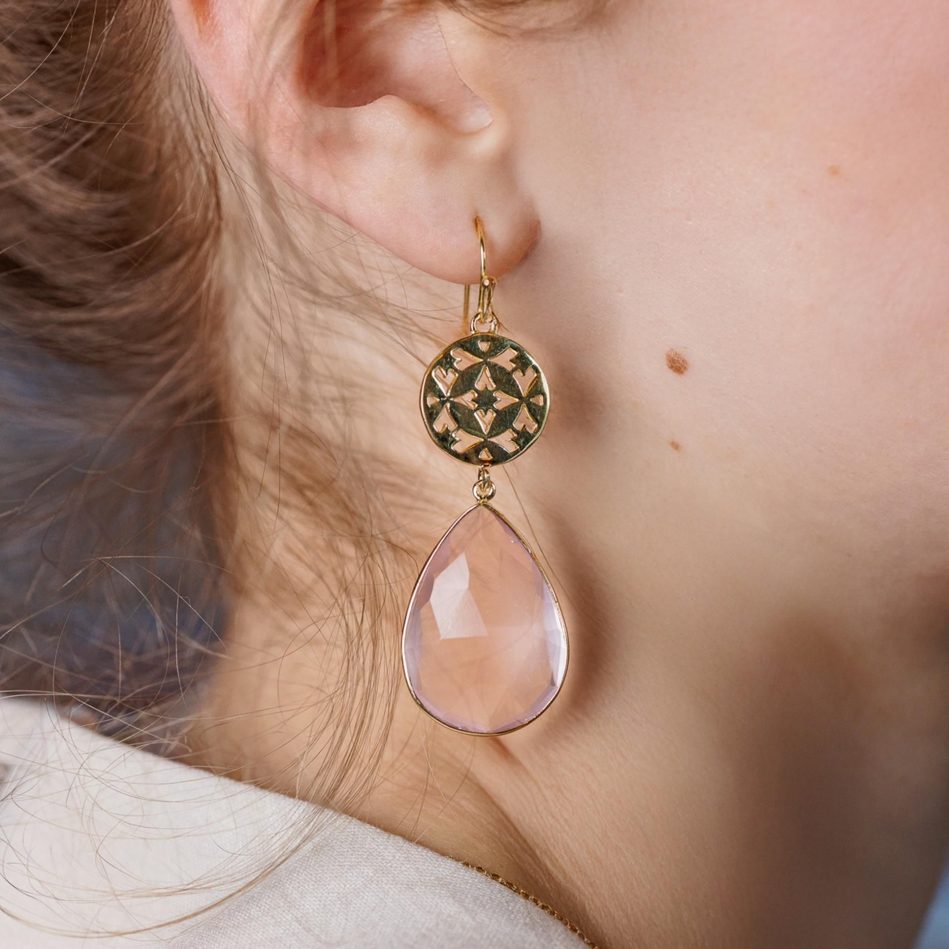 Beautiful gold-plated earrings with a small ornament and a genuine rose quartz pendant. The elegant earrings are a discreet eye-catcher and can be perfectly combined with any shade of gold. Total length approx. 5.5 cm.
