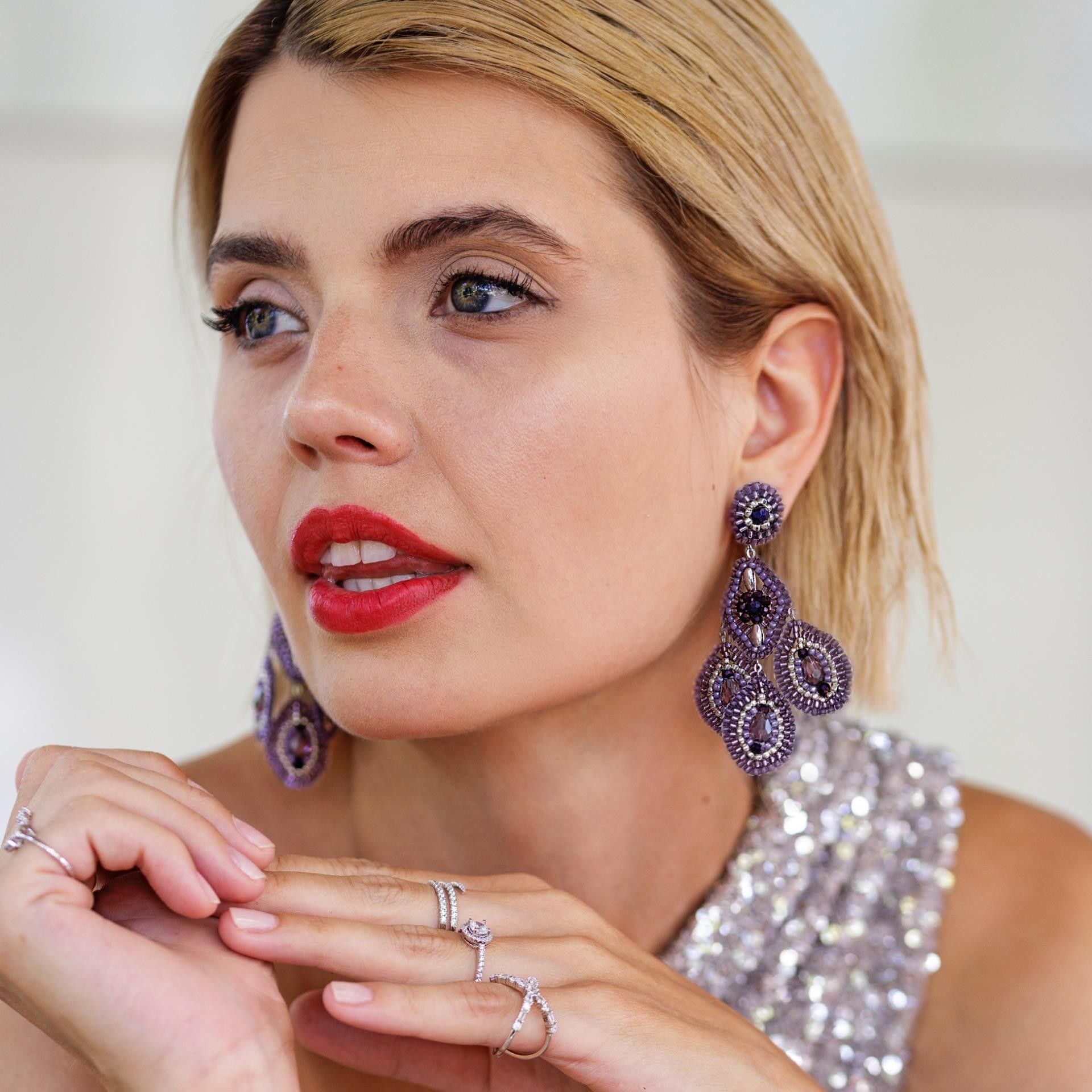 Magnifique boucle d'oreille faite à la main dans un ton violet vif avec 3 pendentifs mobiles. La boucle d'oreille est fabriquée en titane et est donc très hypoallergénique. Longueur totale de la boucle d'oreille : env. 7,5 cm.