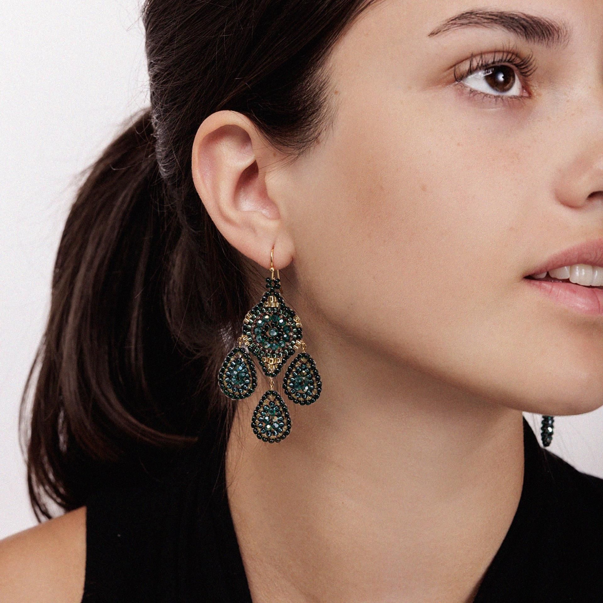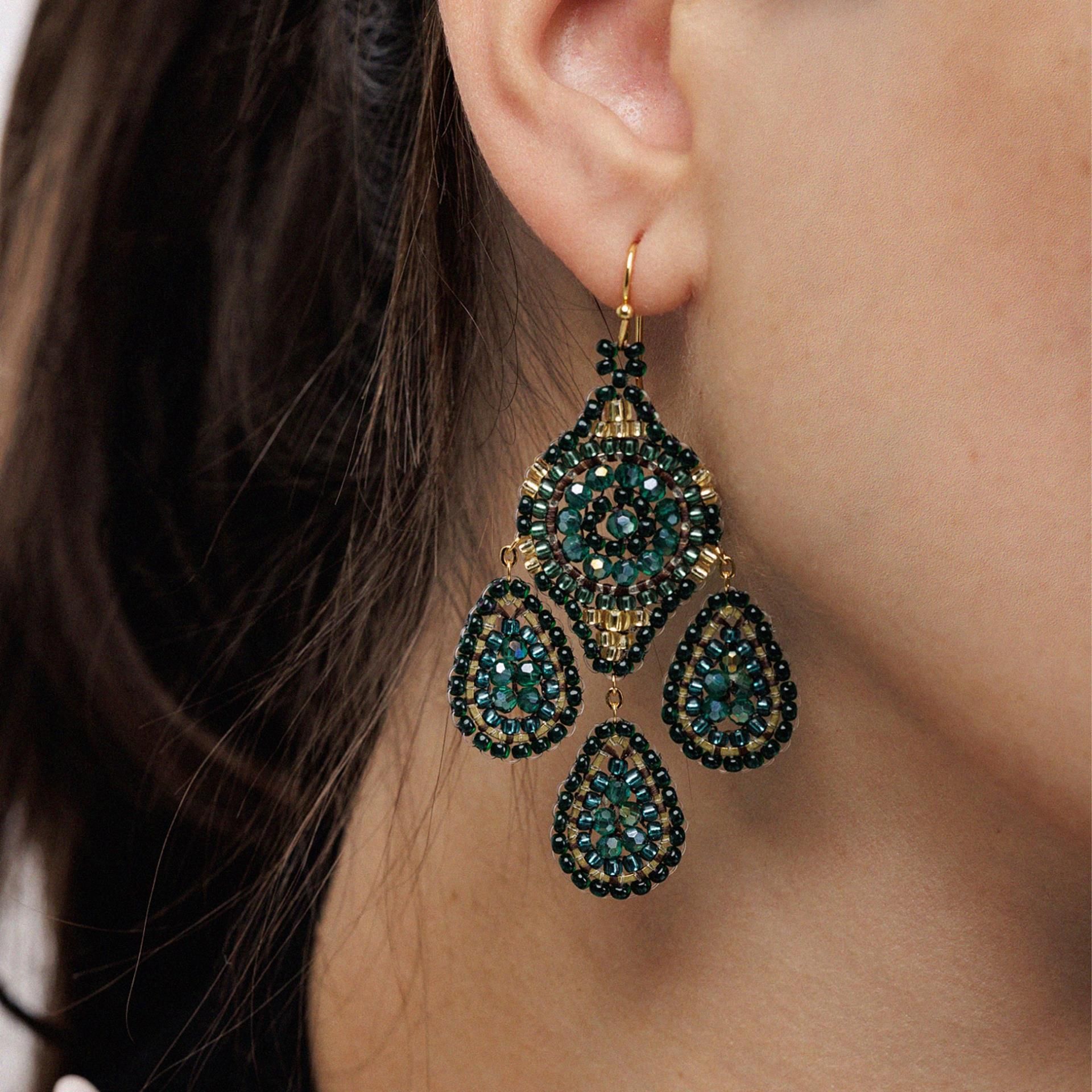 Notre modèle populaire Dreamcatcher dans une nouvelle couleur tendance ! Boucles d'oreilles uniques faites à la main avec des perles de culture japonaises d'un magnifique vert foncé. Super léger à porter, longueur totale d'environ 6,7 cm.