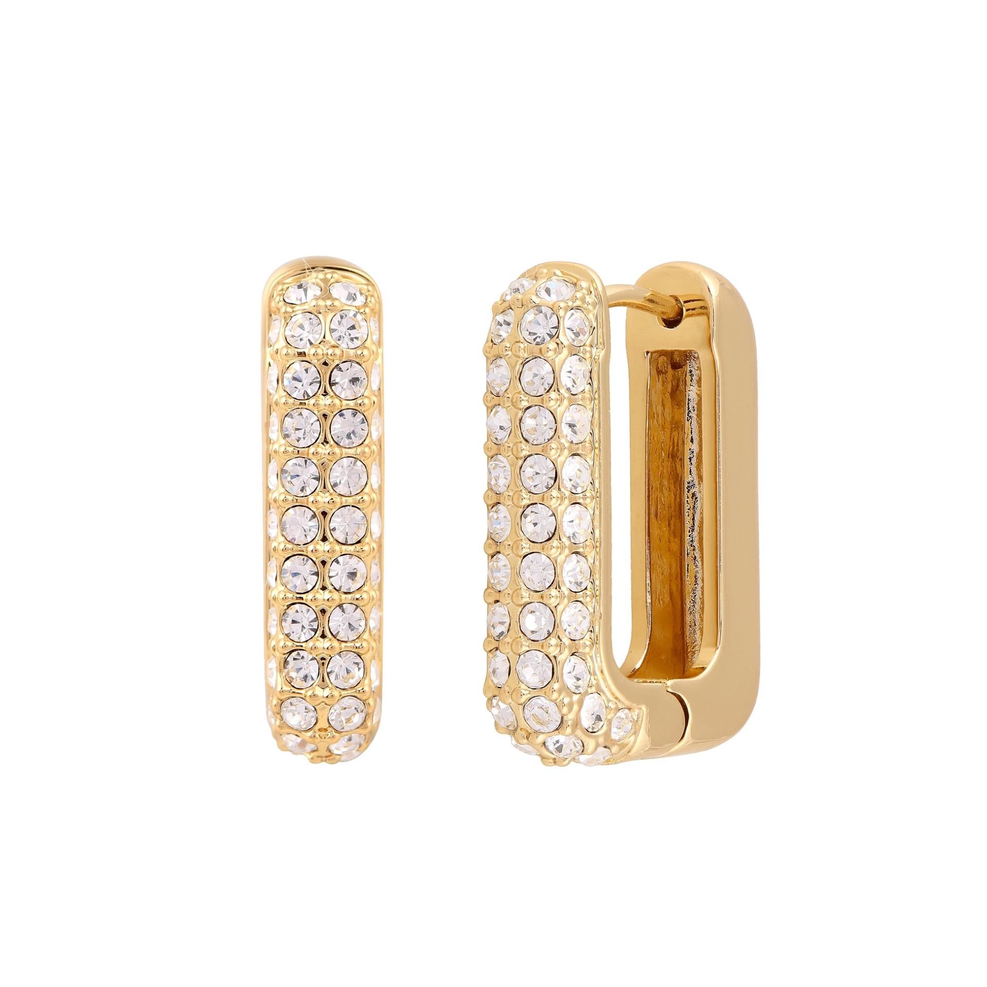 Les boucles d'oreilles Pure CAJOY plaquées or avec cristaux s'accordent aussi bien avec des tenues tendance qu'au quotidien et se combinent parfaitement avec d'autres bijoux. Disponible également en version plus discrète sans cristaux. Longueur totale d'environ 2 cm.
