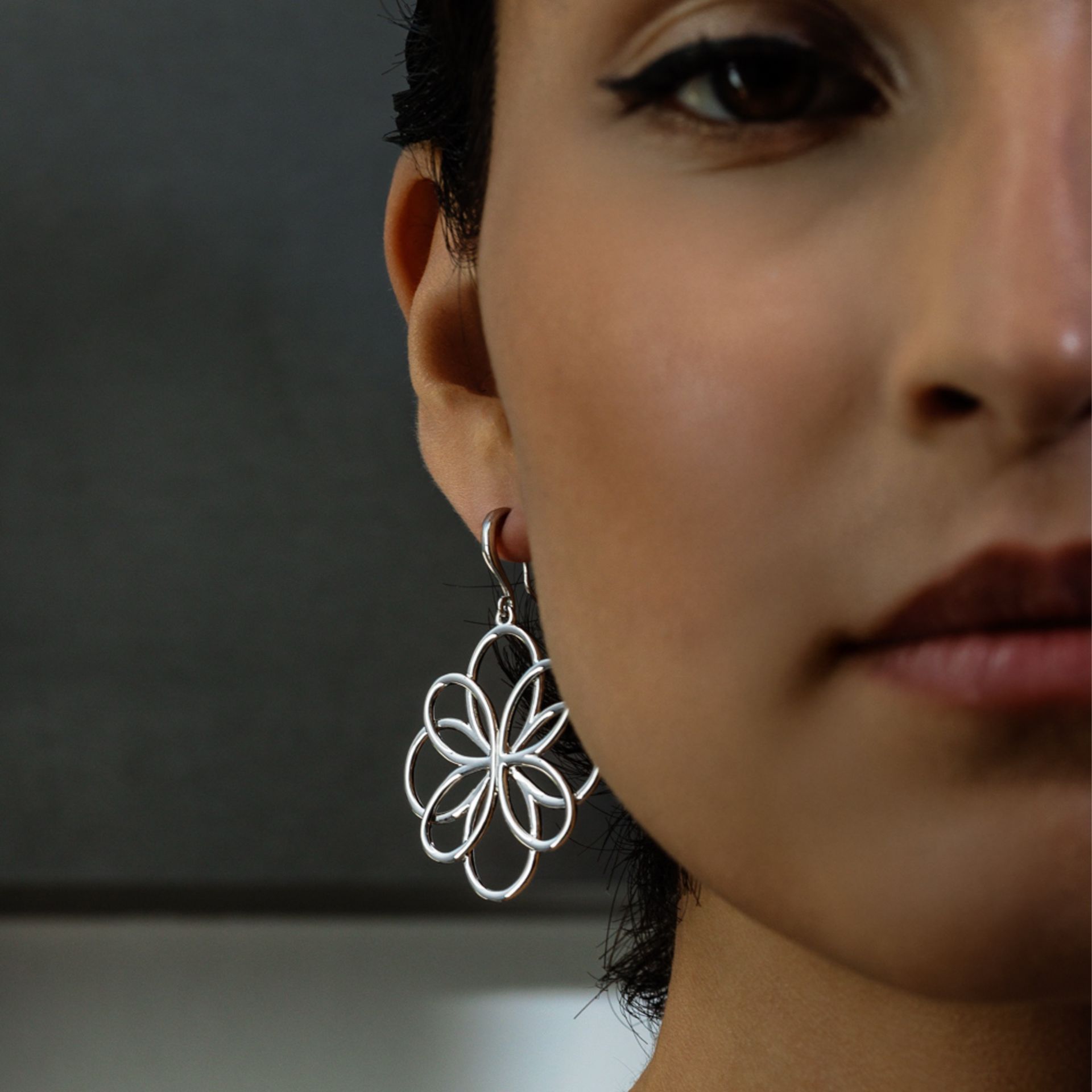 Vous aimez les bijoux extraordinaires avec une note artistique de designer ? Alors laissez-vous séduire par ces boucles d'oreilles plaquées rhodium au design floral. Longueur totale : env. 5 cm, diamètre de la fleur : env. 3,5 cm