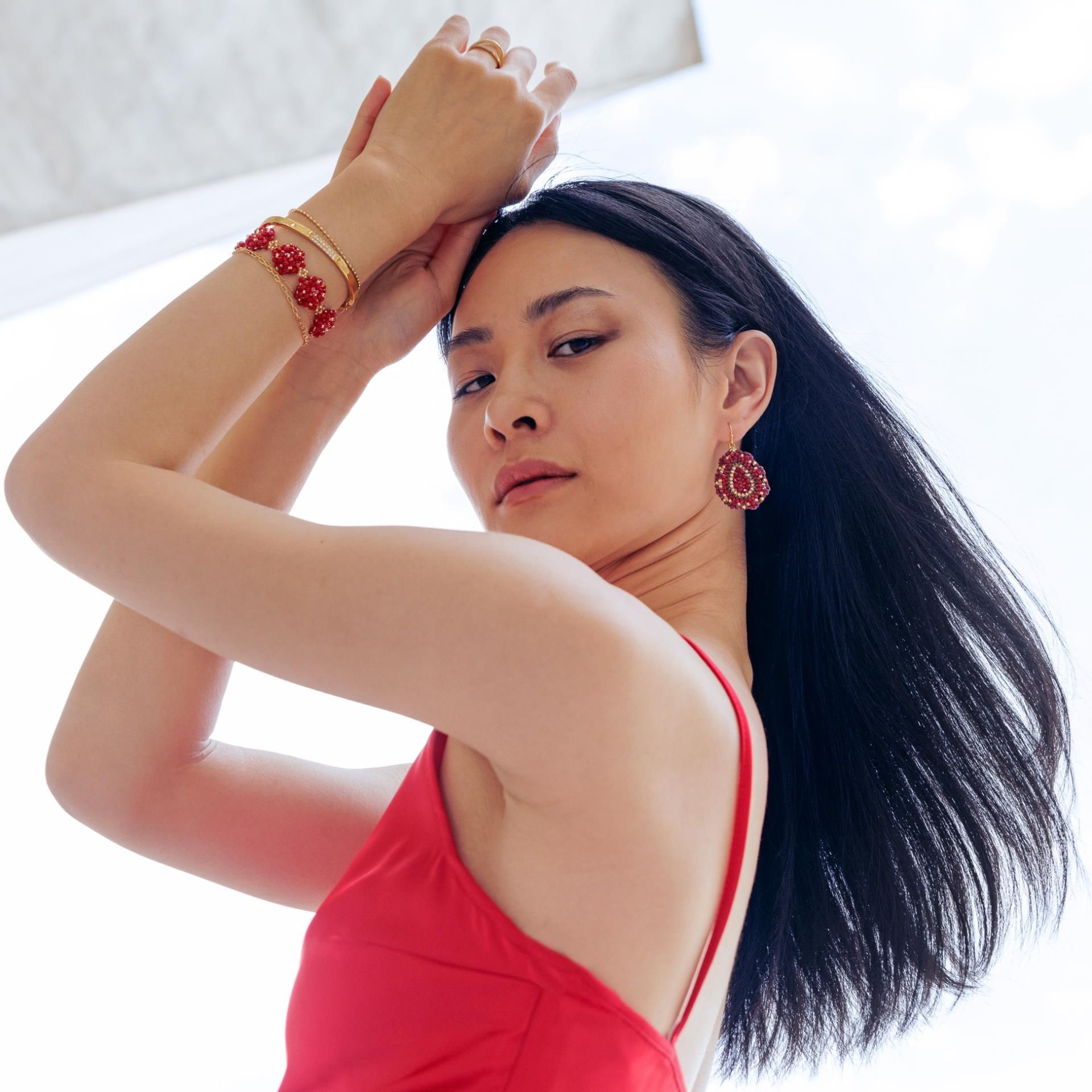 Quelque chose de très particulier - le nouveau bracelet de CAJOY avec des perles japonaises Miyuki dans les couleurs rouge/or. Le bracelet s'adapte agréablement à votre poignet et attirera tous les regards. Grâce à la petite chaîne près du fermoir, la longueur peut être réglée individuellement.