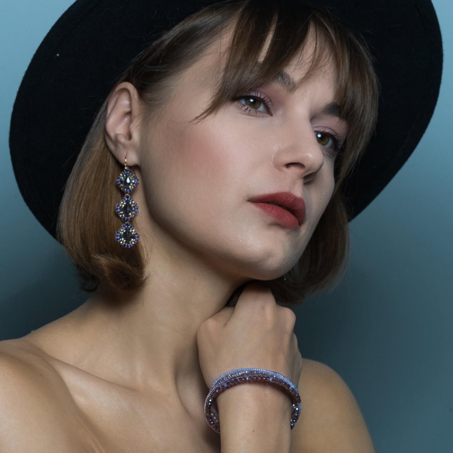 Cet élégant bracelet en fil métallique a été travaillé avec un grand souci du détail. Les innombrables perles dans les tons violets donnent au bracelet une finition lumineuse et font briller celle qui le porte. Grâce à son design particulier et tendance, ce bijou de bras est un must-have pour toutes celles qui aiment le design et la mode. Le bracelet s'enroule sur le poignet et est donc facile à mettre en place soi-même.