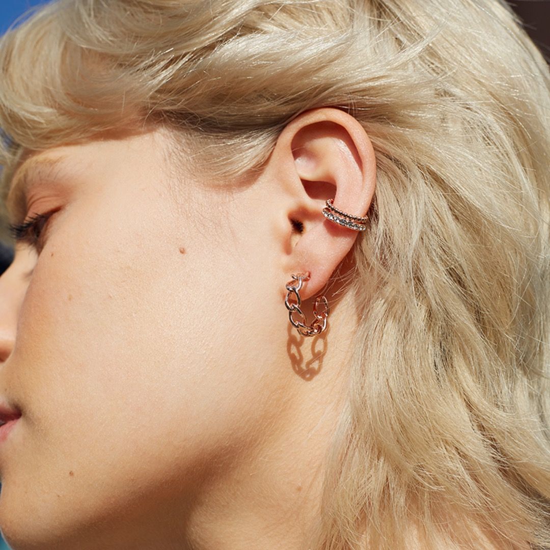 Ces créoles à la mode, dorées à l'or rose et de style chaîne, s'accordent parfaitement avec les looks tendance et les tenues de tous les jours.