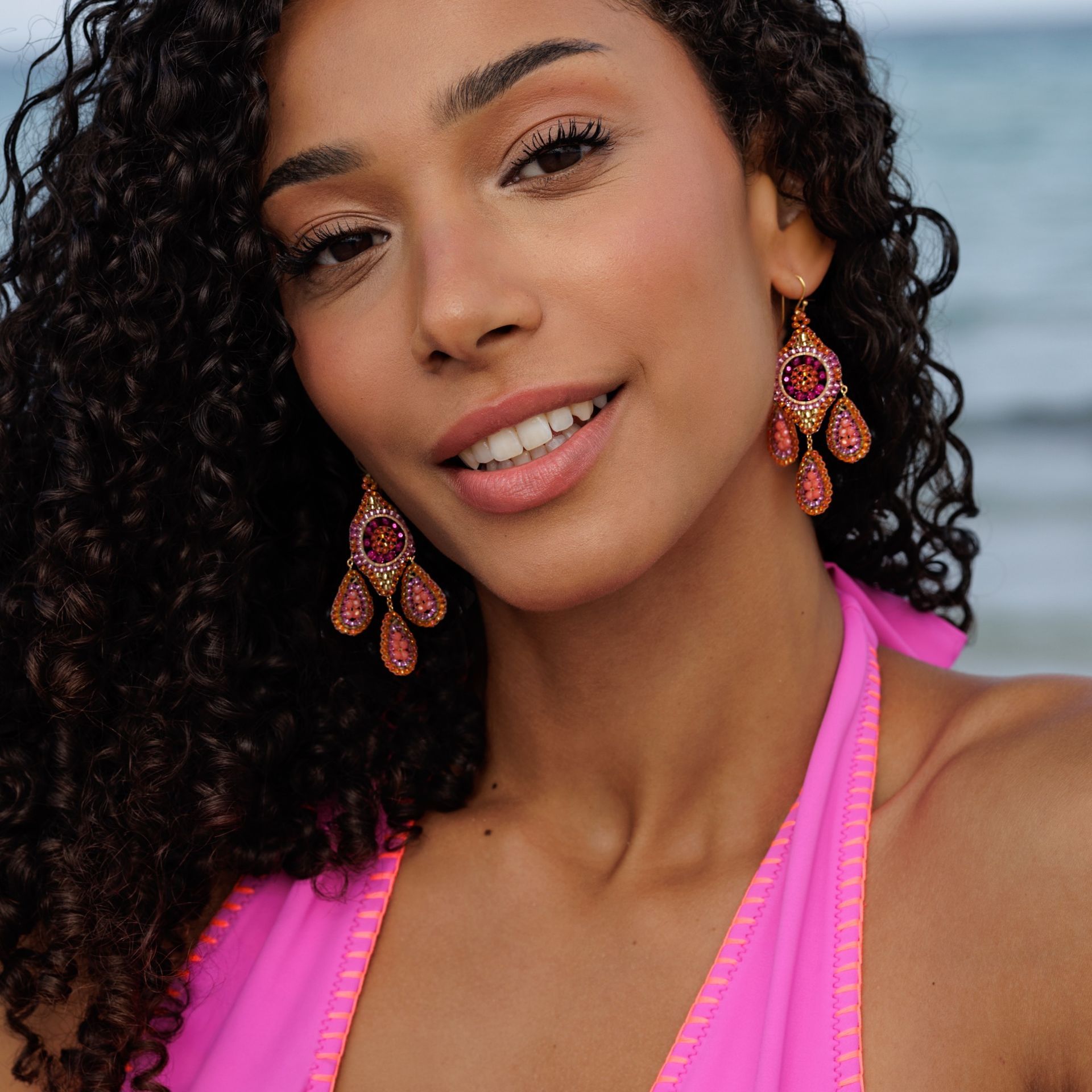Boucles d'oreilles uniques faites à la main avec des perles de culture japonaises dans de magnifiques nuances de rose vif et de corail. Super léger à porter, longueur totale d'environ 6,7 cm.