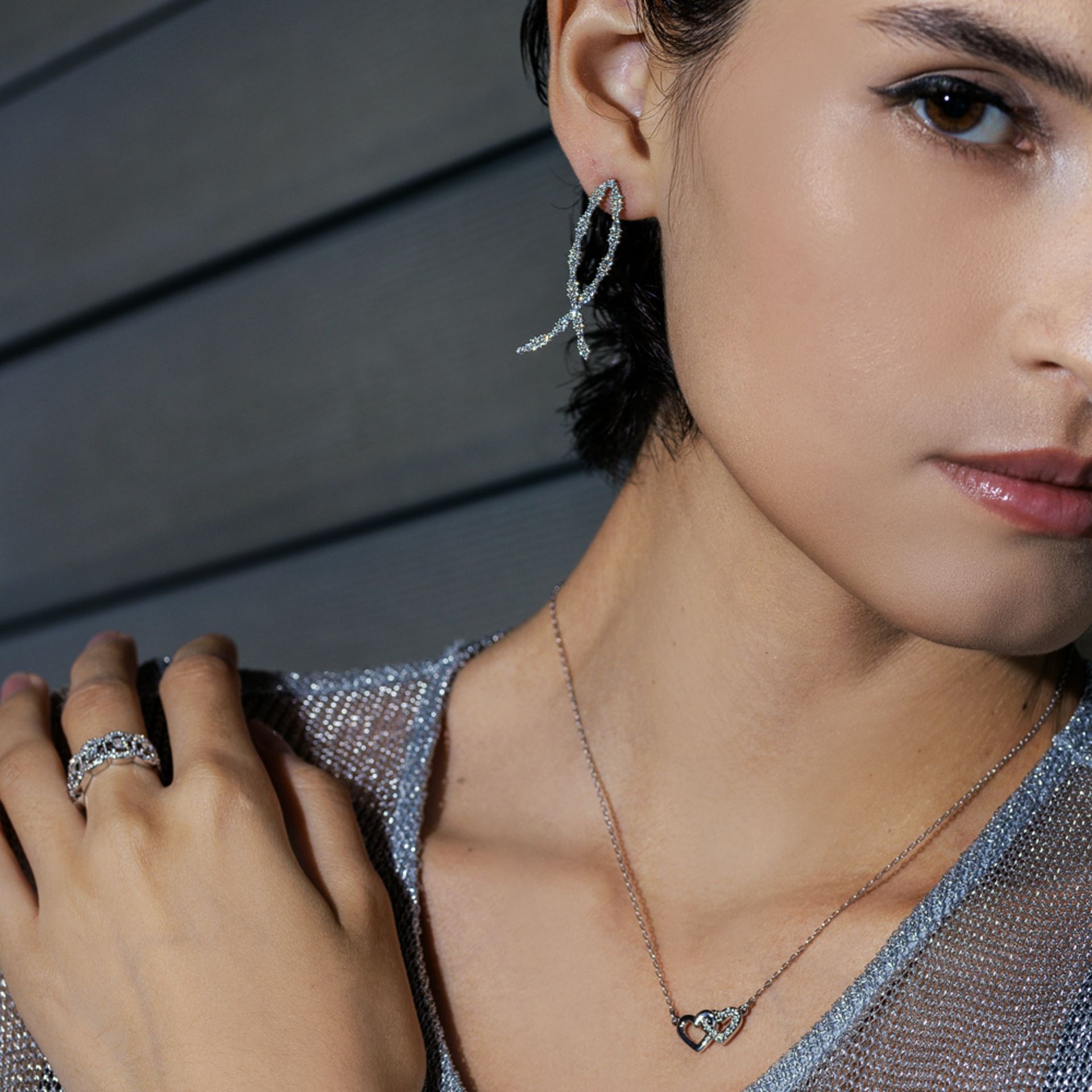 Propres, élégantes, avec une touche de glam : ces boucles d'oreilles modernes séduisent par leur boucle incurvée, sertie de cristaux étincelants. Rhodiés et doux pour la peau - parfaits pour le jour et la nuit. Longueur totale d'env. 4,5 cm