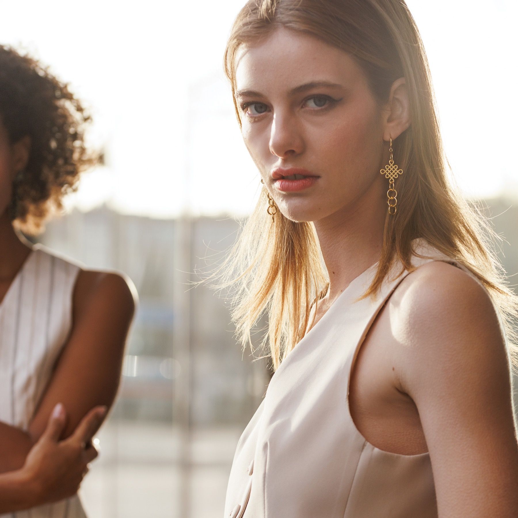 Boucles d'oreilles élégantes en plaqué or avec un petit ornement et plusieurs anneaux entrelacés. Un accroche-regard particulier qui peut être combiné avec de nombreuses tenues. Longueur totale d'env. 7 cm.
