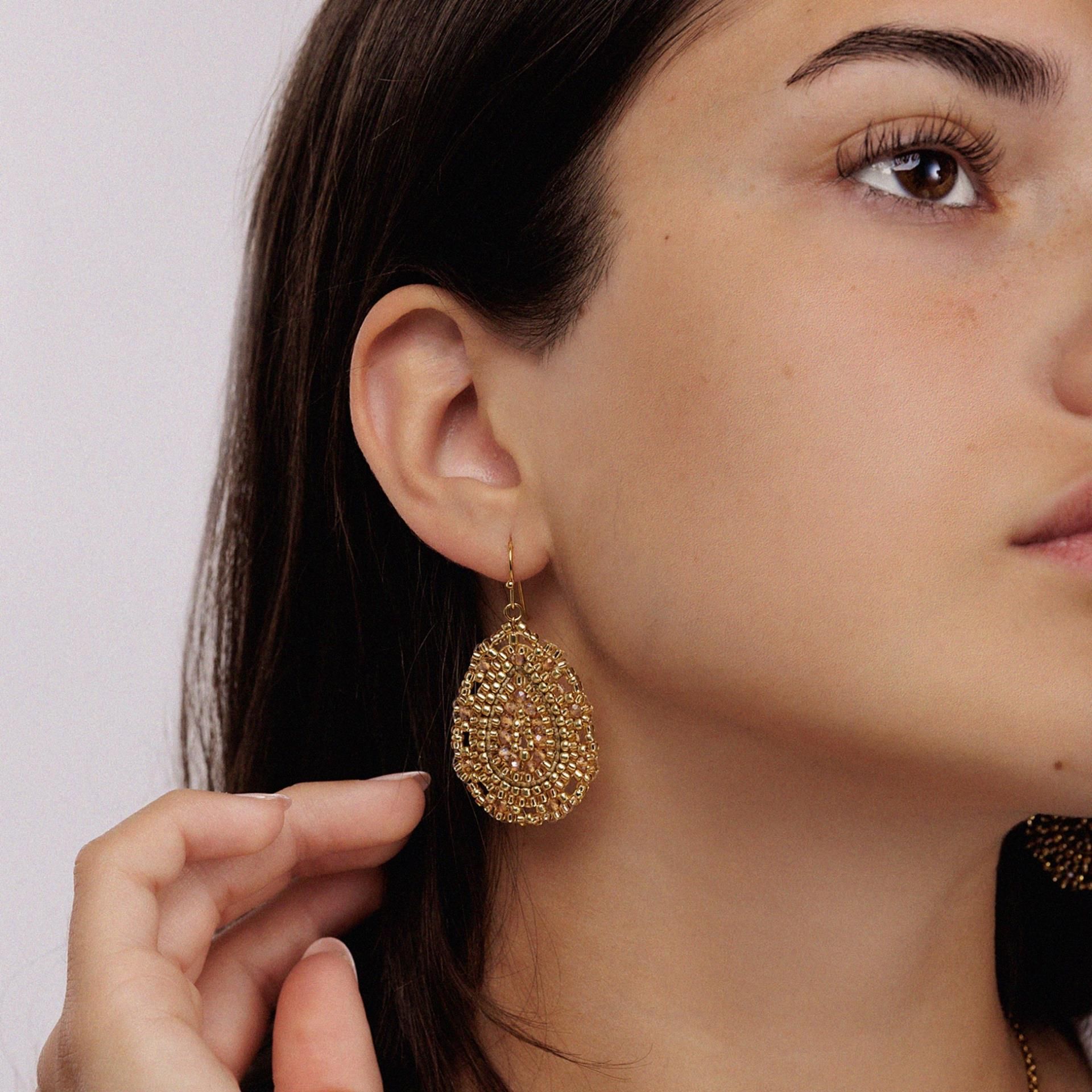 Notre populaire pendentif boho enfin disponible en petit format ! Les perles de culture japonaises dans des tons dorés élégants font de cette boucle d'oreille un compagnon pratique au quotidien qui se combine avec de nombreux looks. Très confortable à porter grâce à son poids léger, longueur totale d'environ 5 cm. Différentes variations de couleurs disponibles !