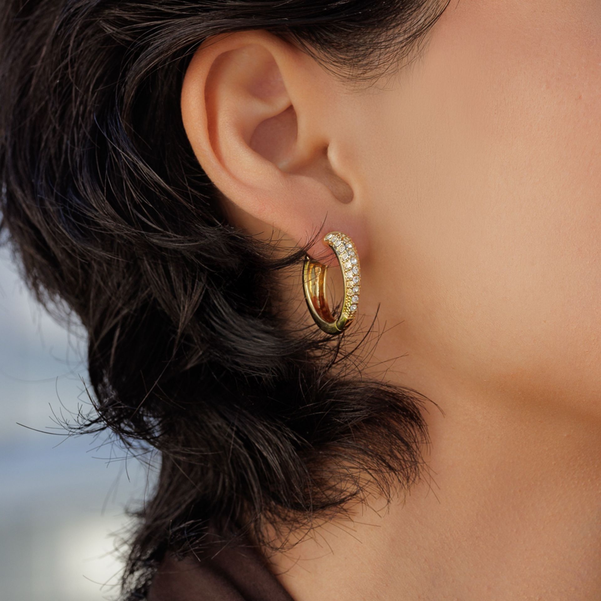 De magnifiques créoles à l'élégance intemporelle - rehaussées de cristaux étincelants. Avec leur diamètre discret de 2 cm, elles sont parfaites pour le quotidien et les occasions spéciales - élégantes, légères et toujours une déclaration. Disponible également en version rhodiée.