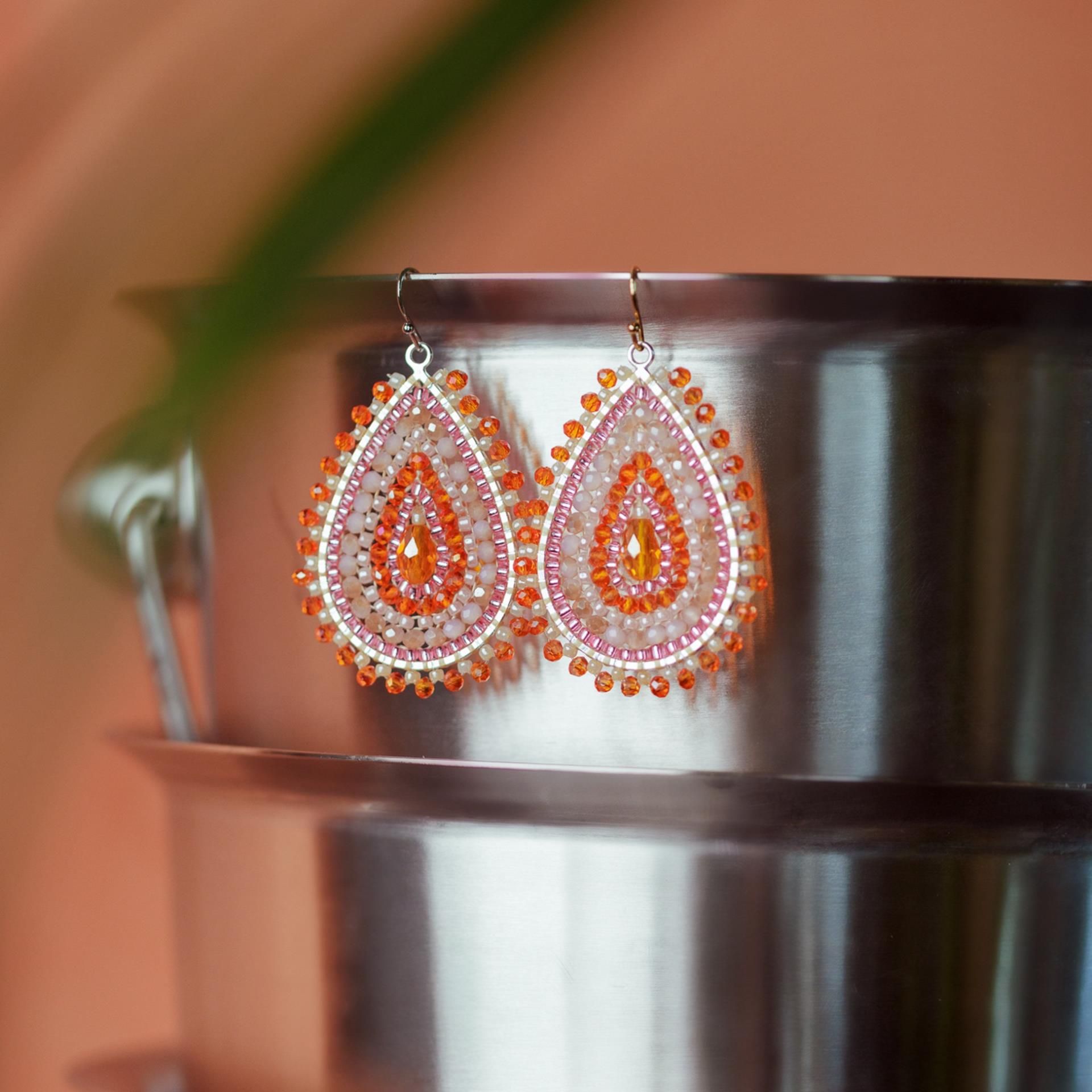 I nostri popolari pendenti boho nei colori di tendenza dell'estate! Gli orecchini in perline giapponesi nei freschi toni dell'arancio e del rosa hanno un gancio rodiato e sono comodissimi da indossare grazie alla loro leggerezza. La lunghezza totale è di circa 4,5 cm.