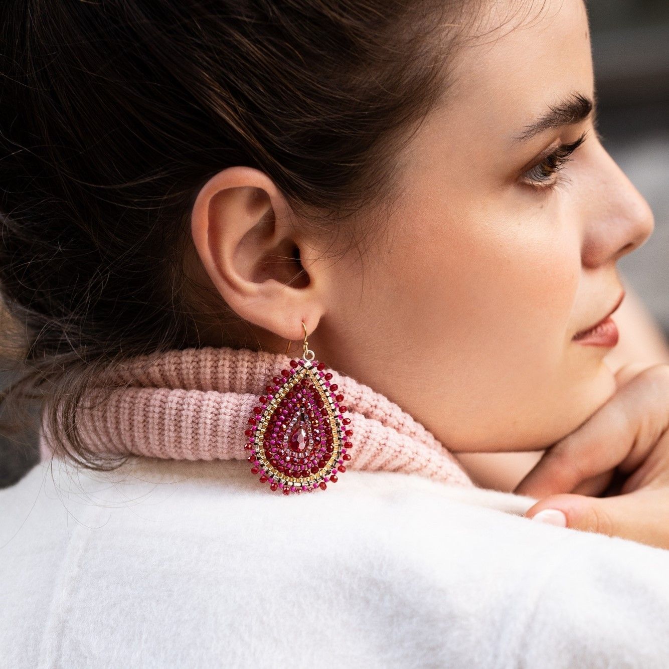 I bellissimi orecchini fatti a manocon perline giapponesi di colore rosso e rosa attirano l'attenzione di tutti. Il gancio è placcato in oro e quindi estremamente adatto alle allergie; leggerissimo e comodo da indossare; lunghezza totale circa 6 cm.