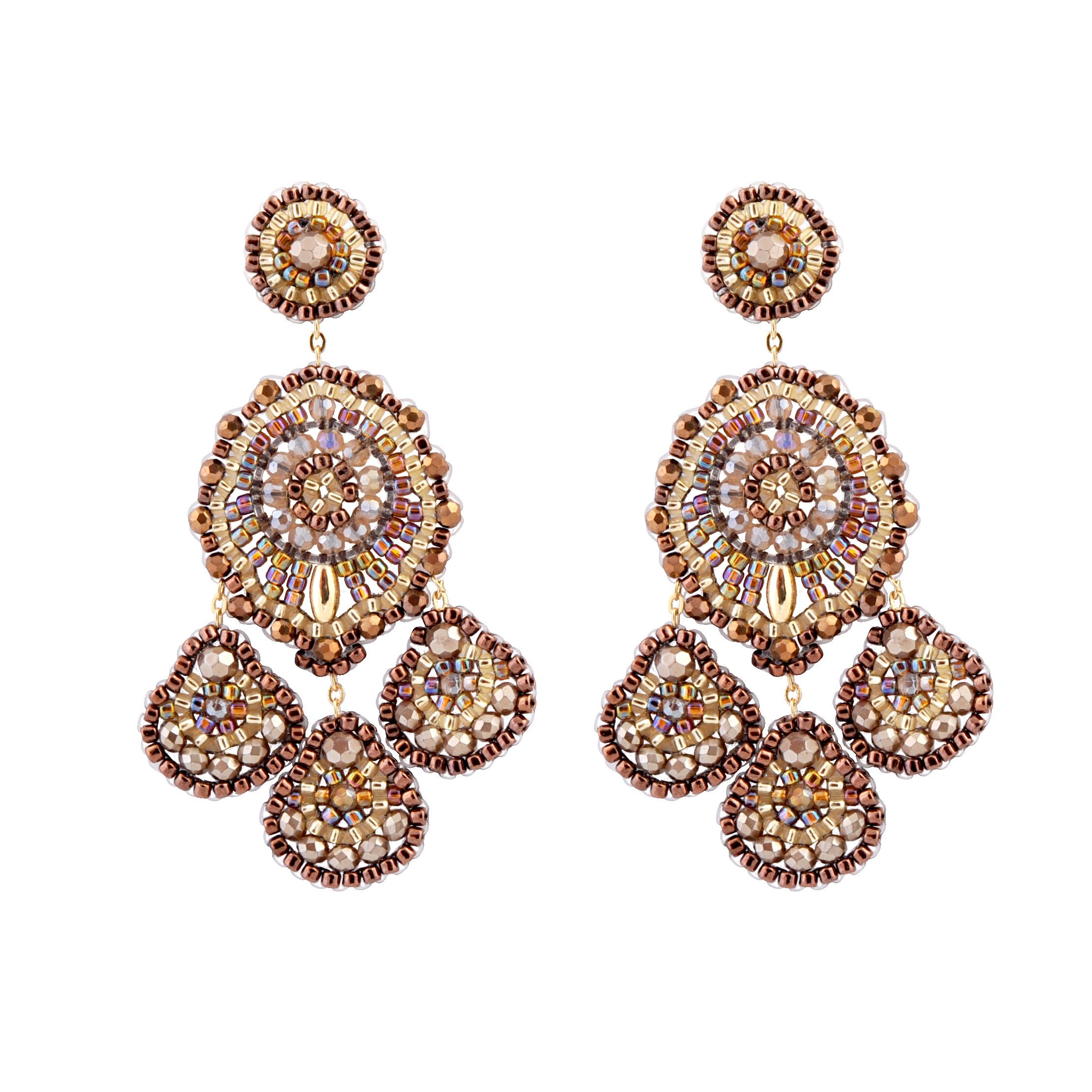 Orecchini fatti a mano in perline marroni con una lunghezza totale di circa 7 cm. I 3 elementi mobili conferiscono agli orecchini un carattere giocoso e valorizzano qualsiasi look. I perni in titanio garantiscono la massima compatibilità.