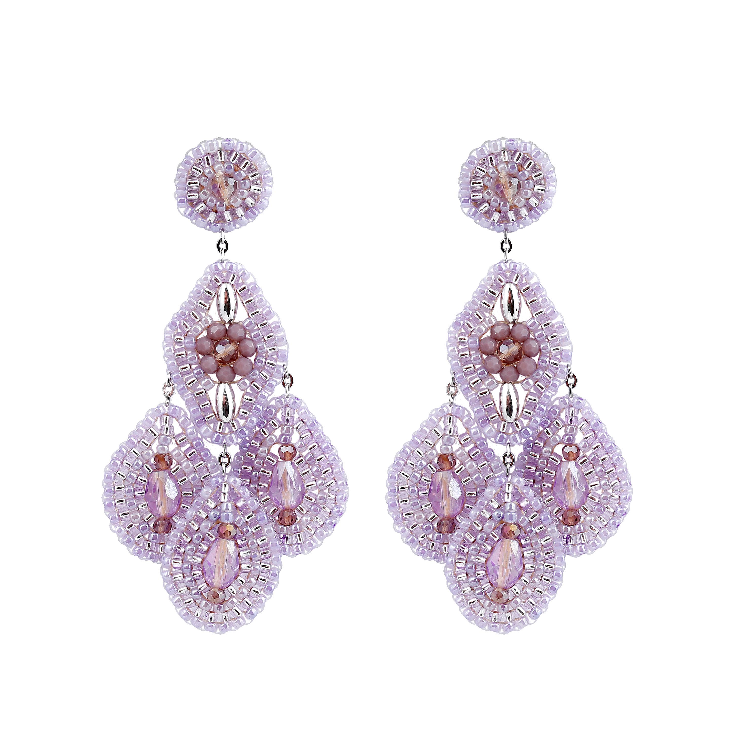 Attraente orecchino fatto a mano nei toni del viola con 3 pendenti mobili. Il perno dell'orecchio è realizzato in titanio ed è quindi estremamente adatto alle allergie. Lunghezza totale dell'orecchino circa 8 cm.