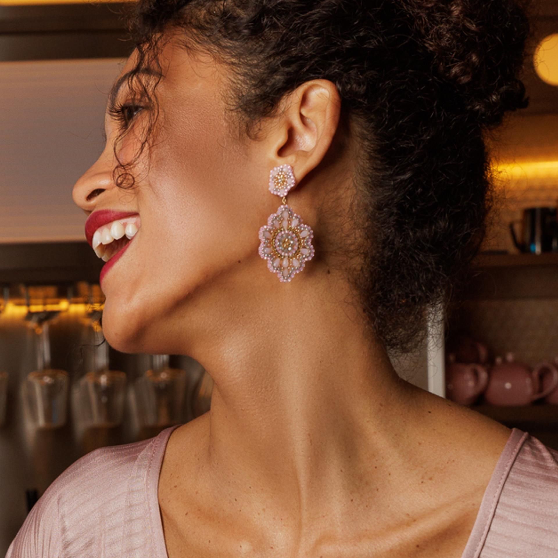 Questi bellissimi orecchini a forma di fiore realizzati con perle giapponesi nei toni del grigio e del rosa sono particolarmente accattivanti. I perni sono realizzati in titanio e sono quindi estremamente adatti alle allergie. Il comfort di indossamento super leggero rende questi orecchini fatti a mano uno dei nostri preferiti in assoluto e sono disponibili in molte combinazioni di colori. Lunghezza totale circa 6,5 cm.